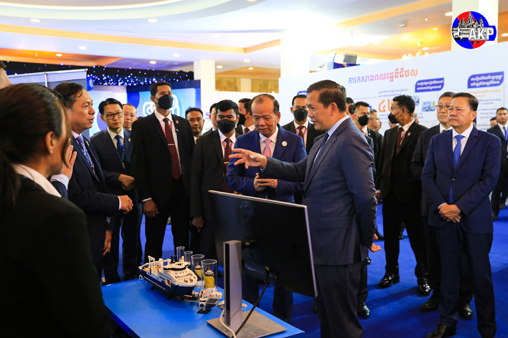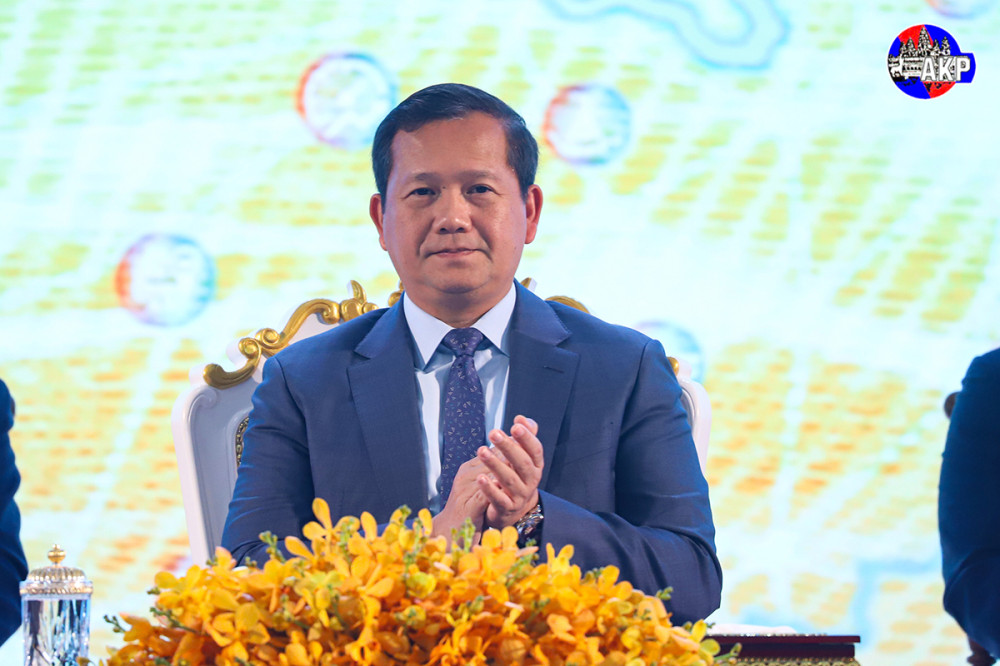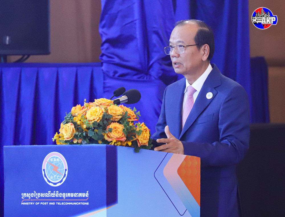 Samdech Moha Borvor Thipadei Hun Manet (Pic. 1), Prime Minister of the Kingdom of Cambodia, delivers his remarks while he was presiding over at Sokha Phnom Penh Hotel & Residence this afternoon the Closing Ceremony of the Ministry of Post and Telecommunications (MPTC)’s meeting to review and assess the five-year (2020-2024) work achievements of digital transformation and set forth new goals for the following years.