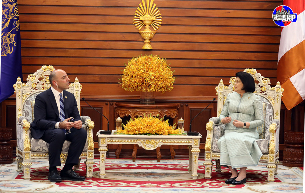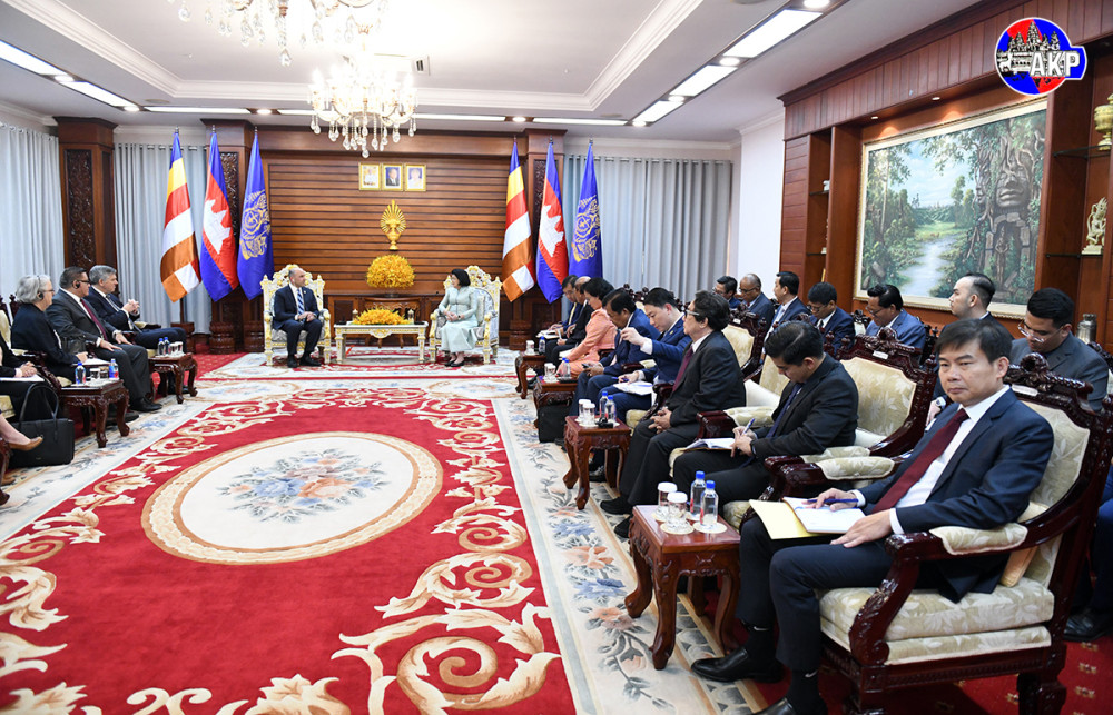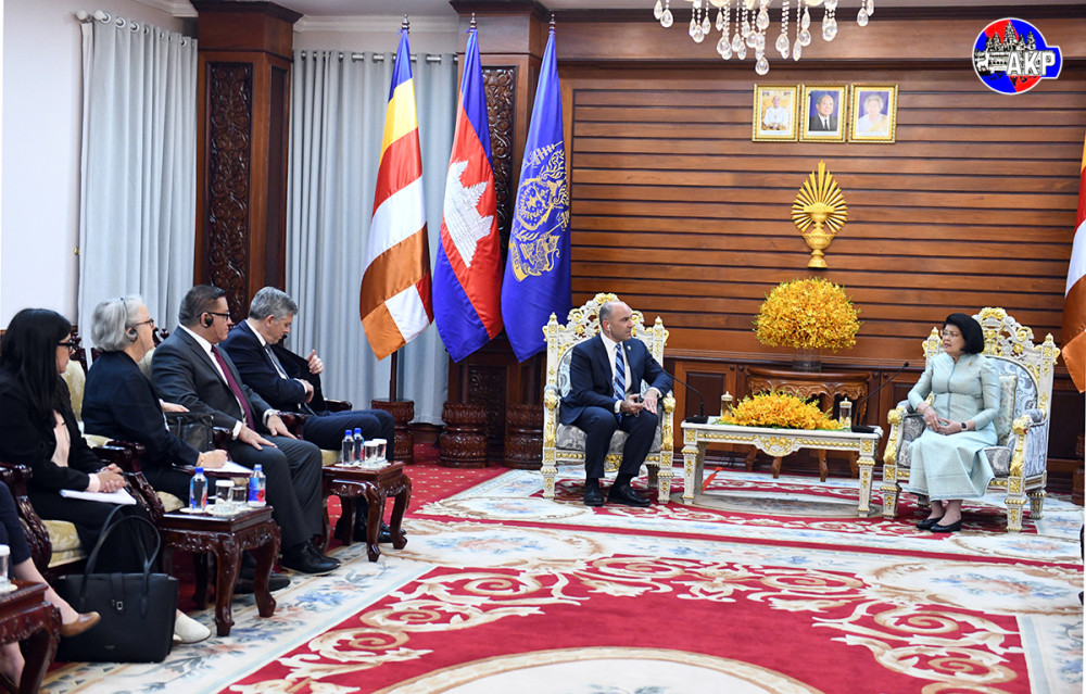 Samdech Maha Rathsapheathika Thipadei Khuon Sudary (L, Pic. 1), President of the National Assembly (NA) of Cambodia, greets visiting H.E. Jimmy Panetta, U.S. representative for California’s 19th congressional district, prior to their courtesy meeting at the NA Palace in Phnom Penh this afternoon.