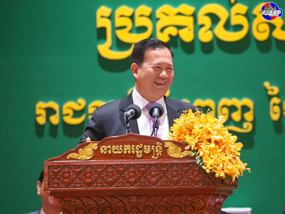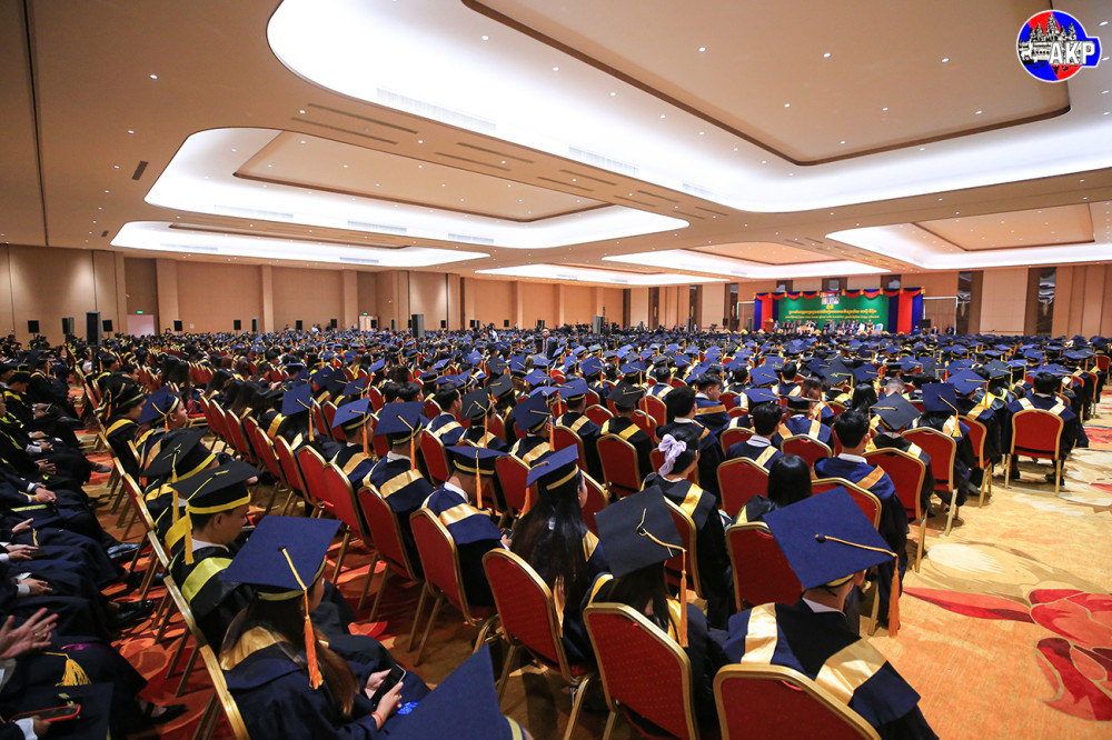 Prime Minister Samdech Moha Borvor Thipadei Hun Manet (Pic. 1) addresses the participants while he was presiding over the graduation ceremony for some 2,550 students of Asia Euro University, held at Koh Pich Convention and Exhibition Centre this morning.