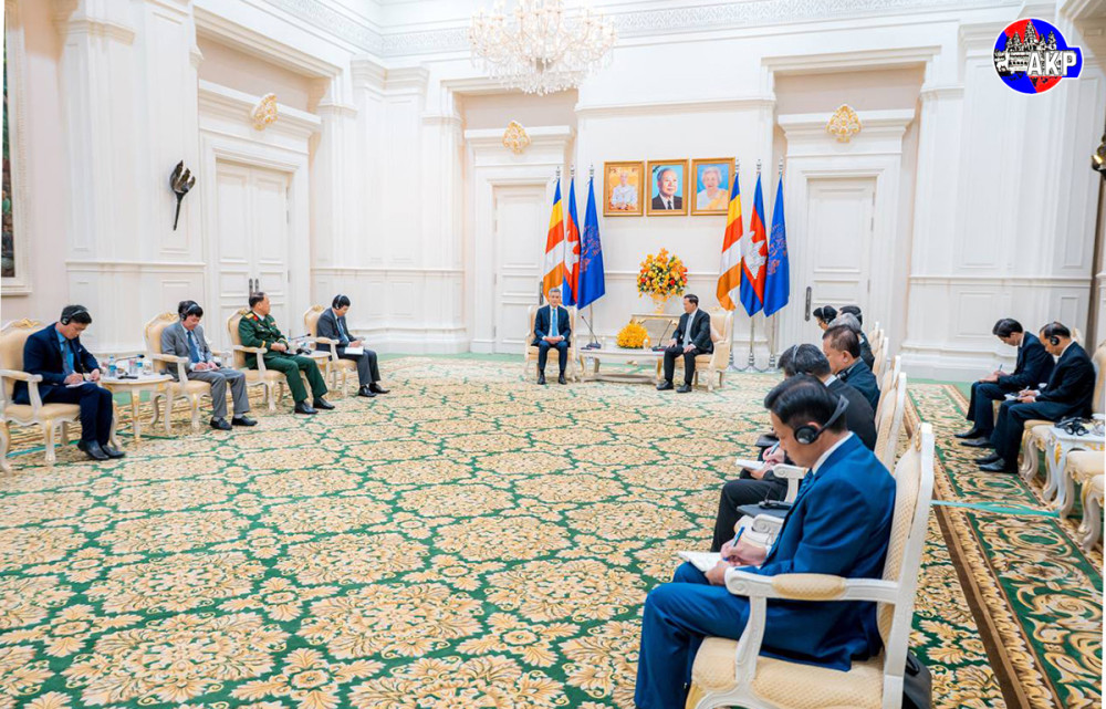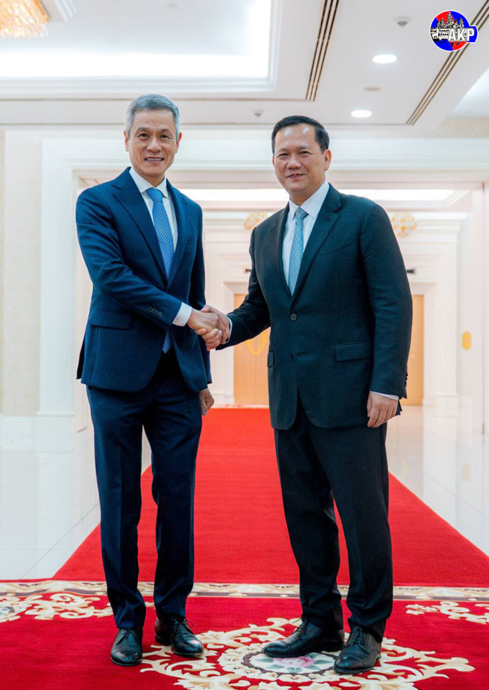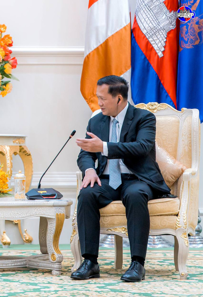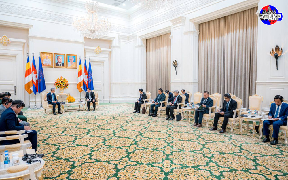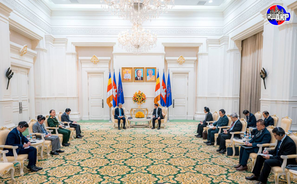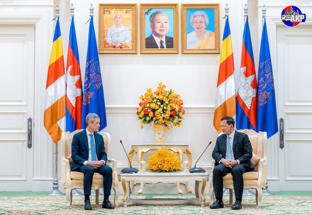Prime Minister Samdech Moha Borvor Thipadei Hun Manet (R, Pic. 1) receives here at the Peace Palace this afternoon a courtesy visit from H.E. Nguyen Minh Vu, newly appointed Ambassador of the Socialist Republic of Vietnam to Cambodia.