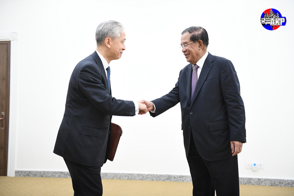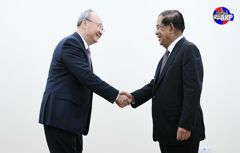 Samdech Akka Moha Sena Padei Techo Hun Sen (R, Pic. 1), President of the Senate and President of the ruling Cambodian People’s Party (CPP), shakes hands with visiting H.E. Yin Li, Member of the Political Bureau of the Communist Party of China (CPC) Central Committee and Secretary of the CPC Beijing Municipal Committee, prior to their courtesy meeting at the January 7 Palace here this afternoon.