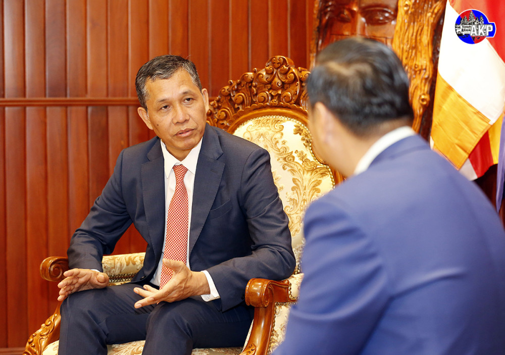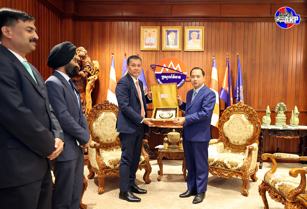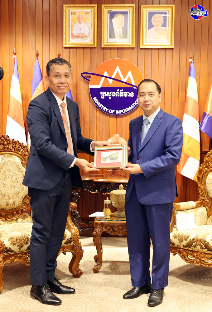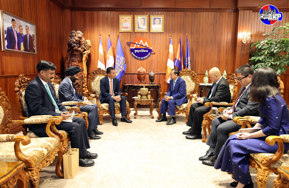 Cambodia’s Minister of Information H.E. Neth Pheaktra (R, Pic. 1) holds talks with newly appointed Ambassador of the Republic of India to the Kingdom of Cambodia, H.E. Vanlalvawna Bawitlung, at the ministry this afternoon.