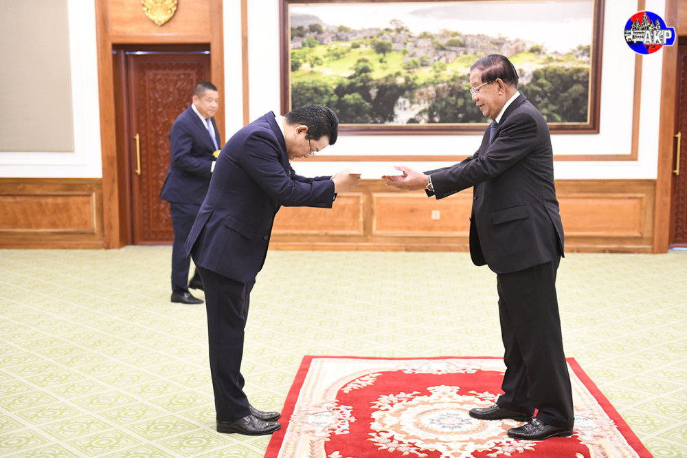 Cambodia’s Acting Head of State, Samdech Akka Moha Sena Padei Techo Hun Sen (R, Pic. 1), receives credentials from H.E. Tull TRAISORAT, newly appointed Ambassador of the Kingdom of Thailand to the Kingdom of Cambodia, at the Senate Palace here this morning.