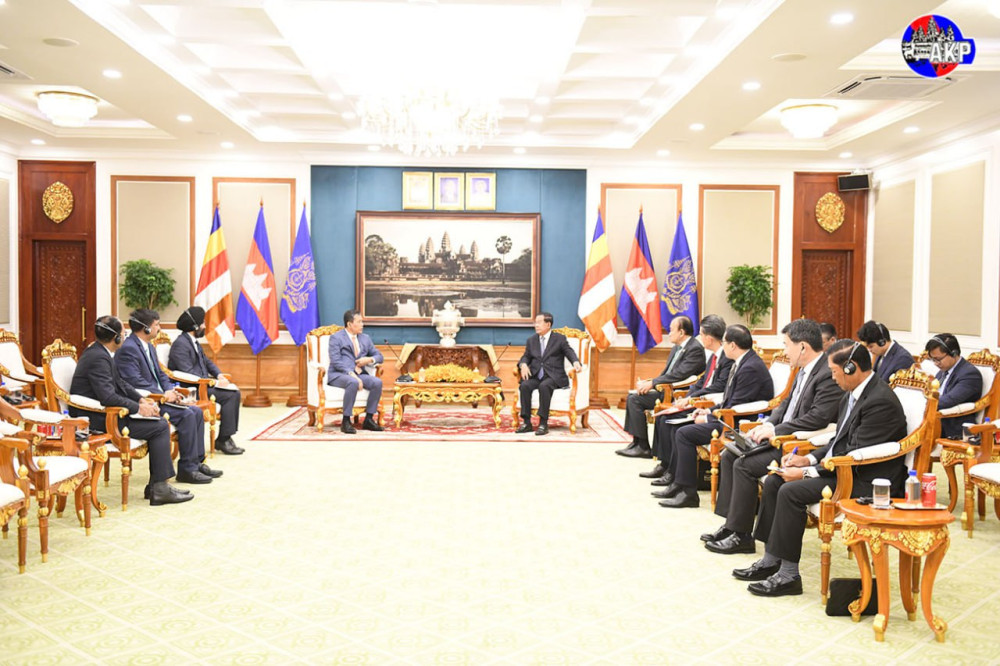 Cambodia’s Acting Head of State, Samdech Akka Moha Sena Padei Techo Hun Sen (R, Pic. 1) receives a courtesy visit from newly appointed Ambassador of the Republic of India to the Kingdom of Cambodia, H.E. Vanlalvawna Bawitlung, at the Senate Palace in Phnom Penh this morning.