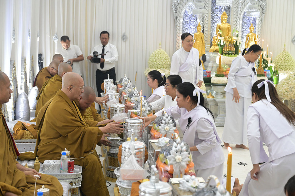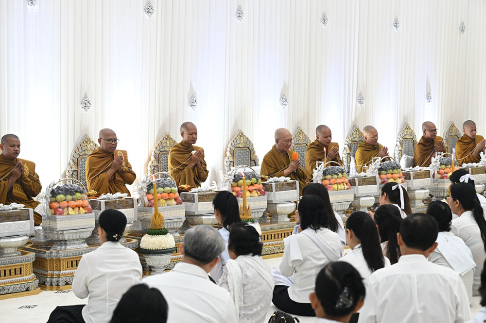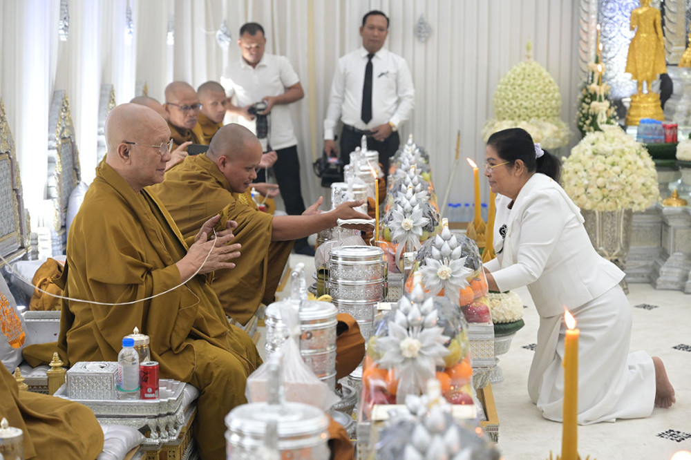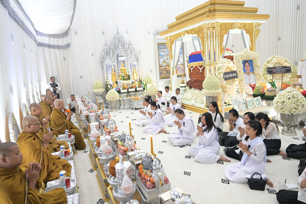 Nine Buddhist monks hold a religious ceremony for late H.E. Neak Oknha Oudom Metreivisidh Hun San, Secretary of State at the Ministry of Public Works and Transport and the eldest brother of Samdech Techo Hun Sen, Acting Head of State of Cambodia, who passed away in Phnom Penh on Mar. 28, at the age of 78 due to illness.