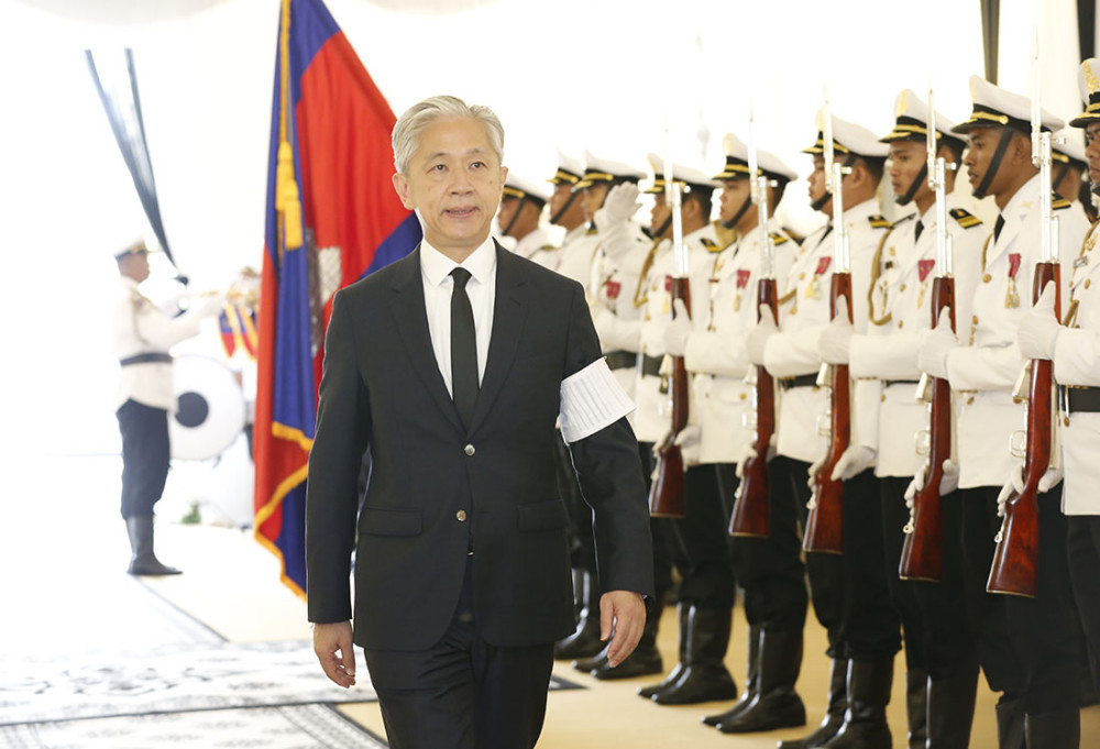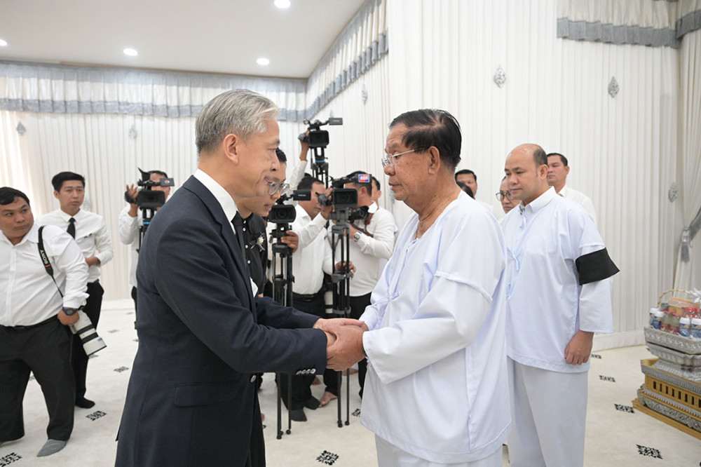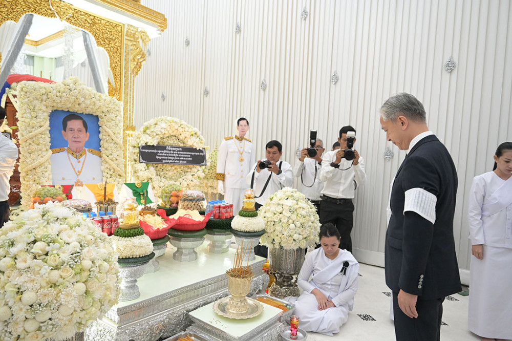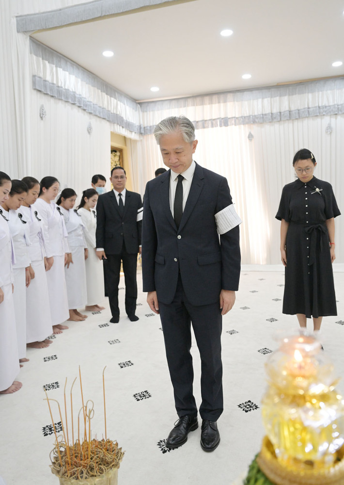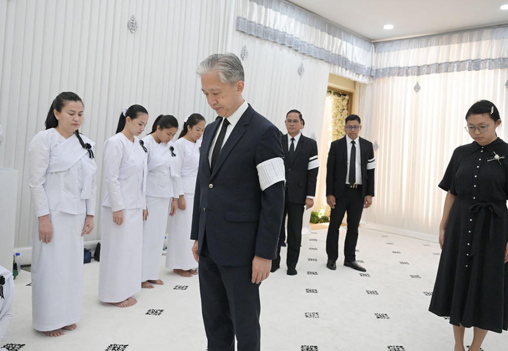 A delegation of the Chinese Embassy in Phnom Penh led by its Ambassador H.E. Wang Wenbin (Pic. 1) this morning pays last respects to late H.E. Neak Oknha Oudom Metreivisidh Hun San, Secretary of State at the Ministry of Public Works and Transport, and the eldest brother of Samdech Techo Hun Sen, Acting Head of State of Cambodia, who passed away in Phnom Penh on Mar. 28, at the age of 78 due to illness.