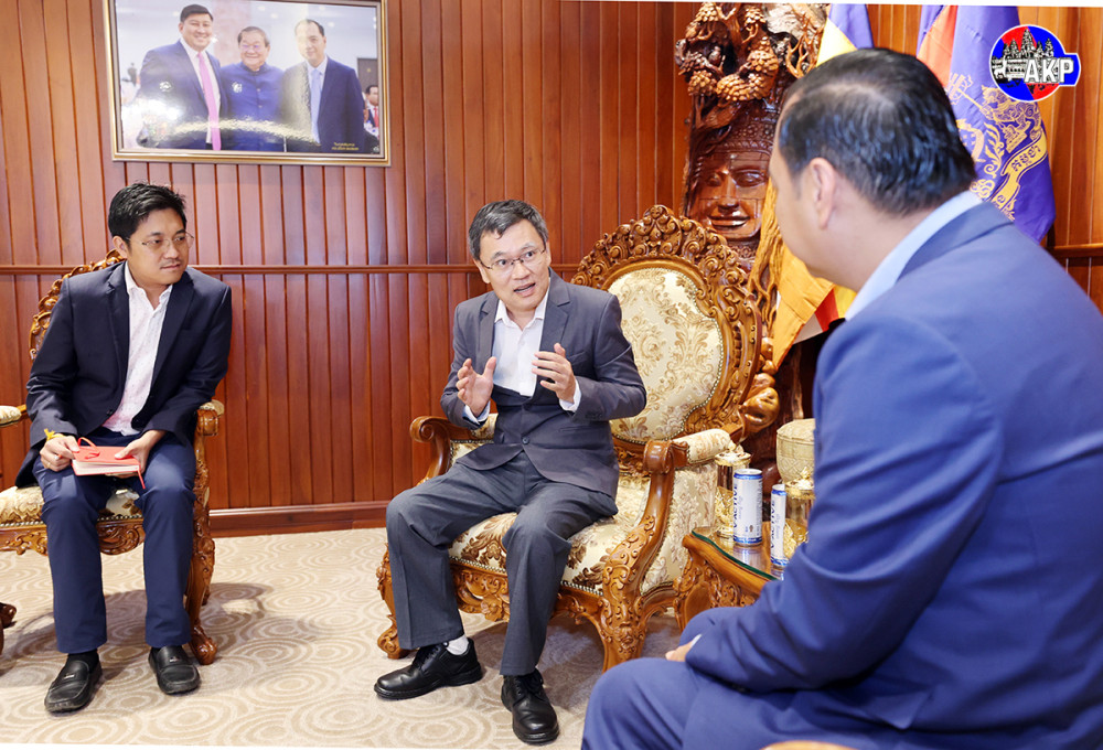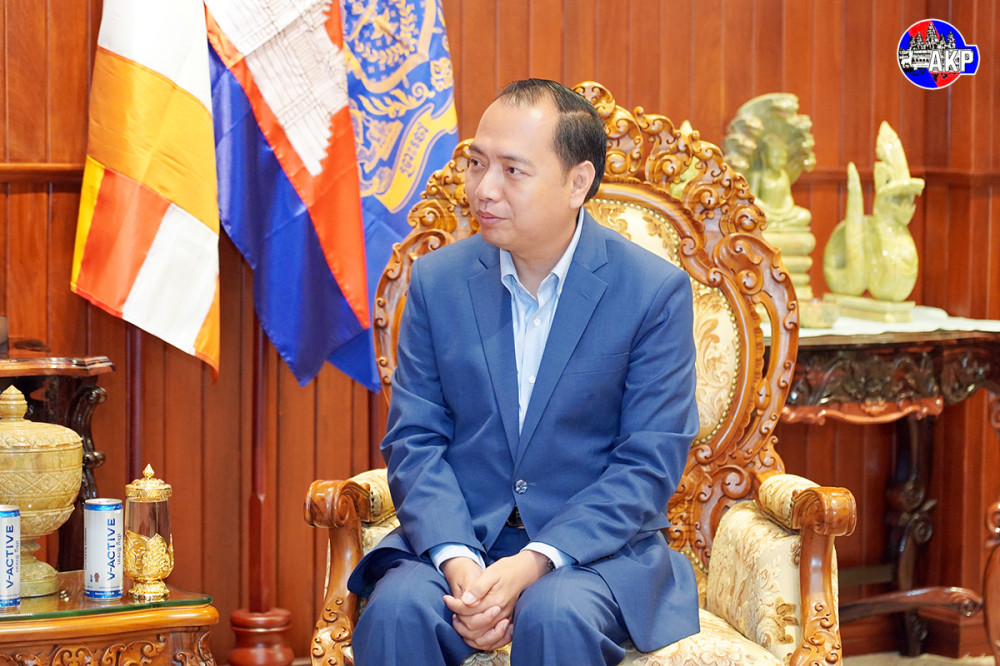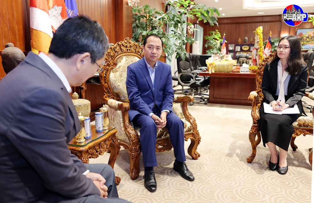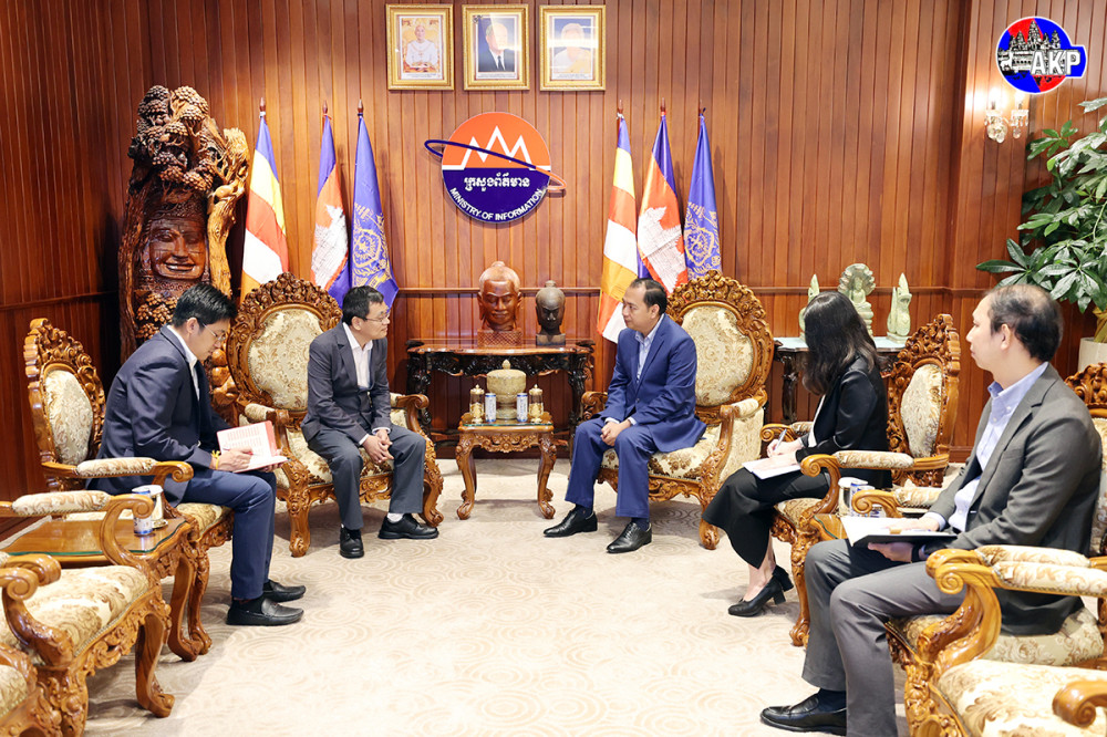 Cambodian Minister of Information H.E. Neth Pheaktra (R, Pic. 1) receives here at the ministry’s office this morning a courtesy visit from Mr. Wu Changwei, Chief Correspondent of Phnom Penh-based Bureau of Xinhua News Agency of the People’s Republic of China.