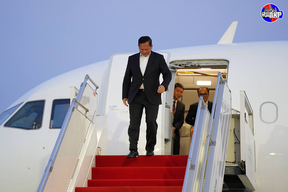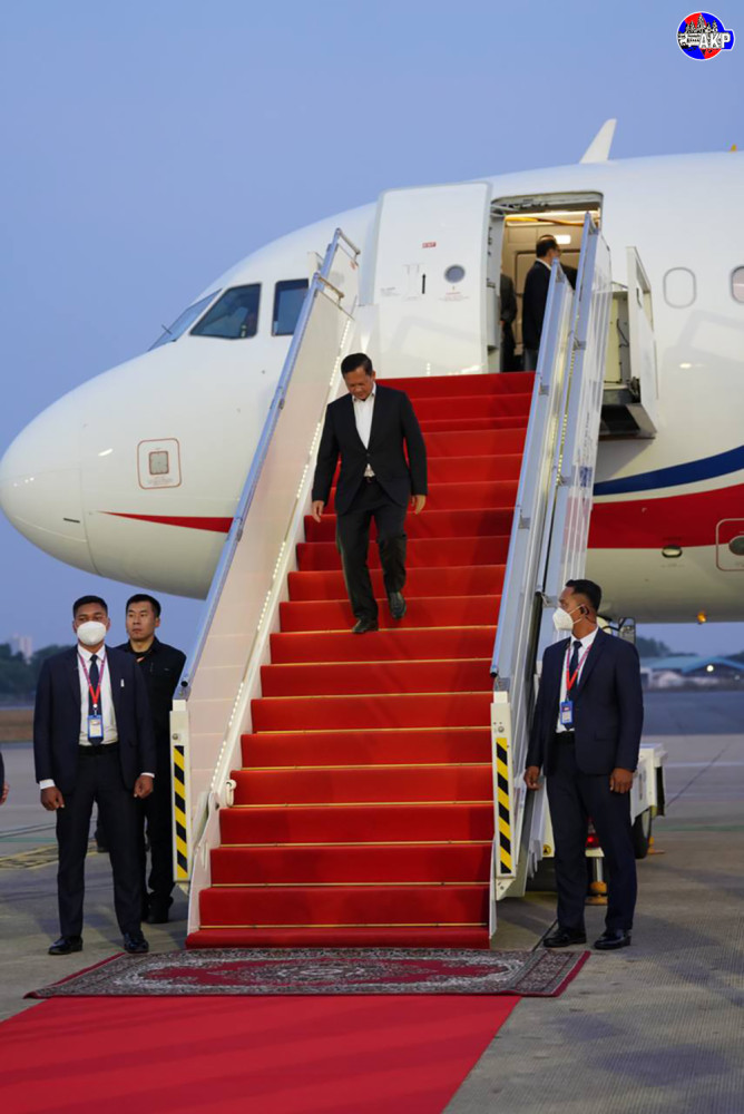 Prime Minister Samdech Moha Borvor Thipadei Hun Manet (Pic. 1) disembarks from a special aircraft upon his arrival at Phnom Penh International Airport this evening, after paying homage to late H.E. Gen. Khamtay Siphandone, former President of the Lao People’s Democratic Republic (Lao PDR), and meeting with Lao top leaders in Vientiane, Lao PDR.