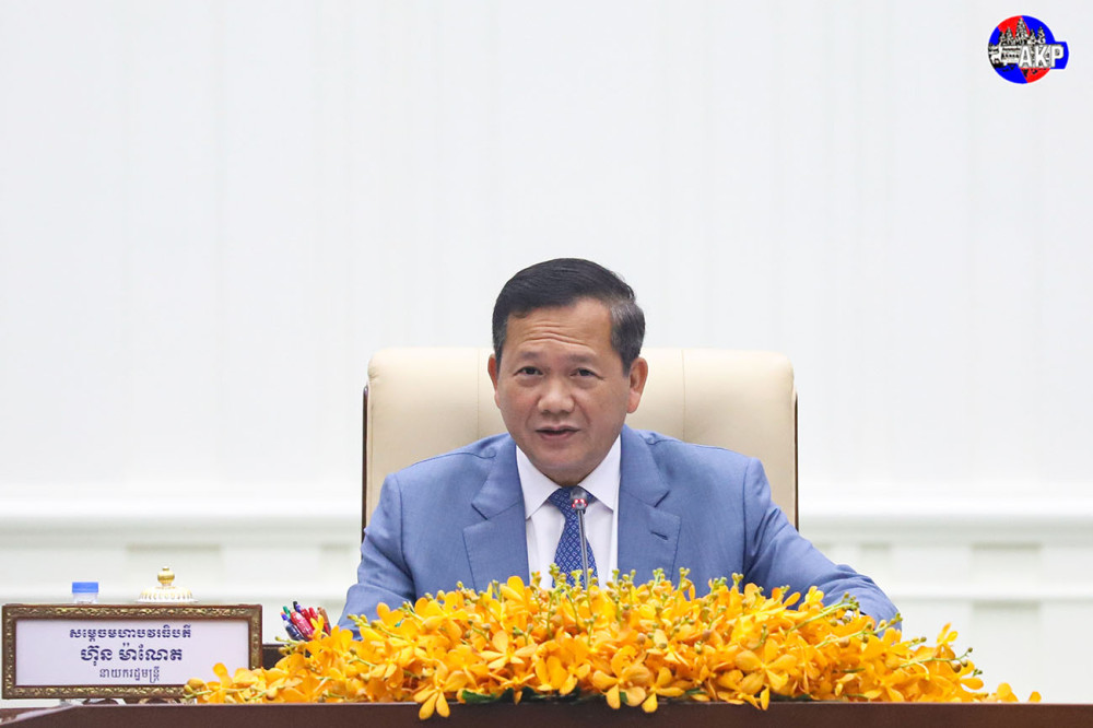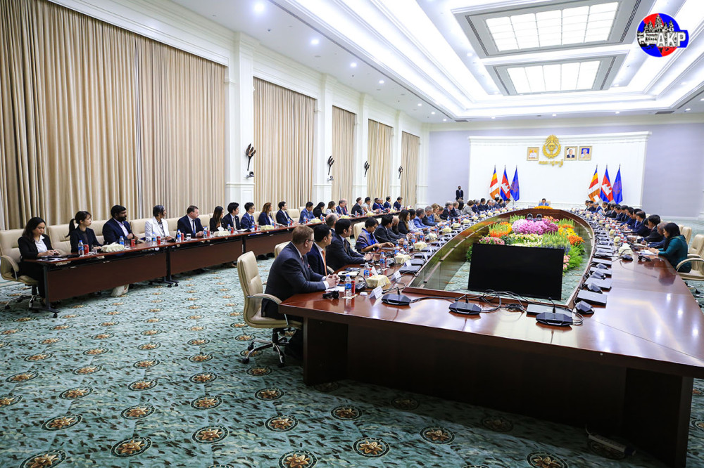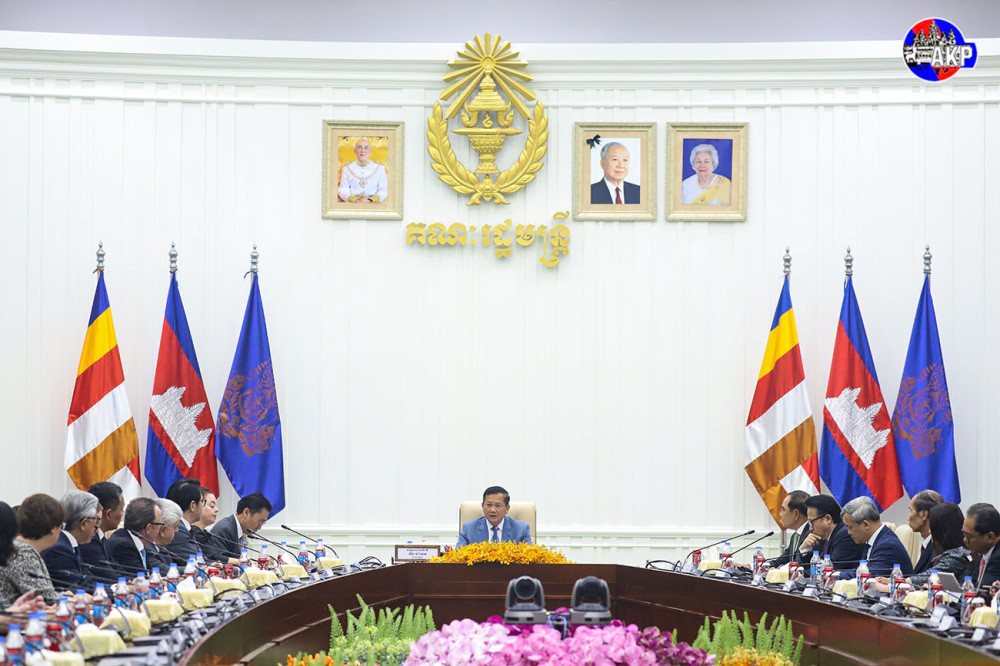Samdech Moha Borvor Thipadei Hun Manet (Pic. 1), Prime Minister of the Kingdom of Cambodia, receives development partners and the private sector supporting the Royal Government’s mine action efforts, at the Peace Palace here this morning.