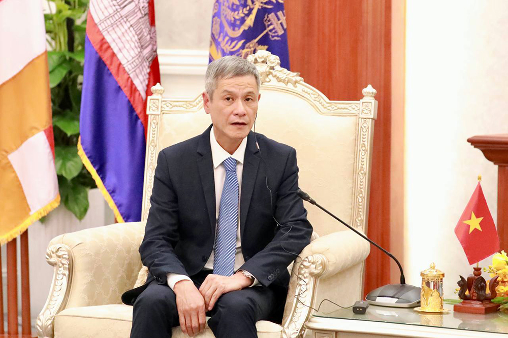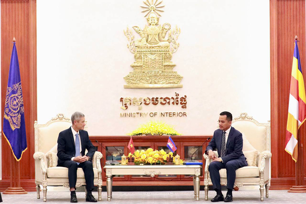 H.E. Aphi Santepundit Sar Sokha (R, Pic. 1), Deputy Prime Minister, Minister of Interior, meets with Vietnamese Ambassador to Cambodia H.E. Nguyen Minh Vu, at the ministry’s office this afternoon.