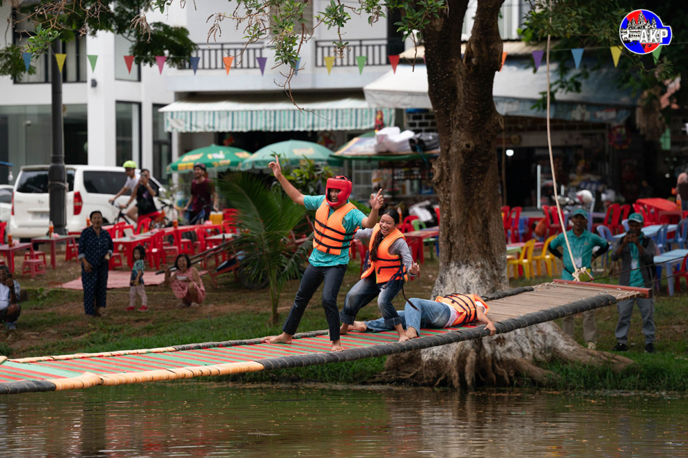 General View of Tourists and Local People Play Folk Games in Siem Reap City on 2nd Day of Khmer New Year