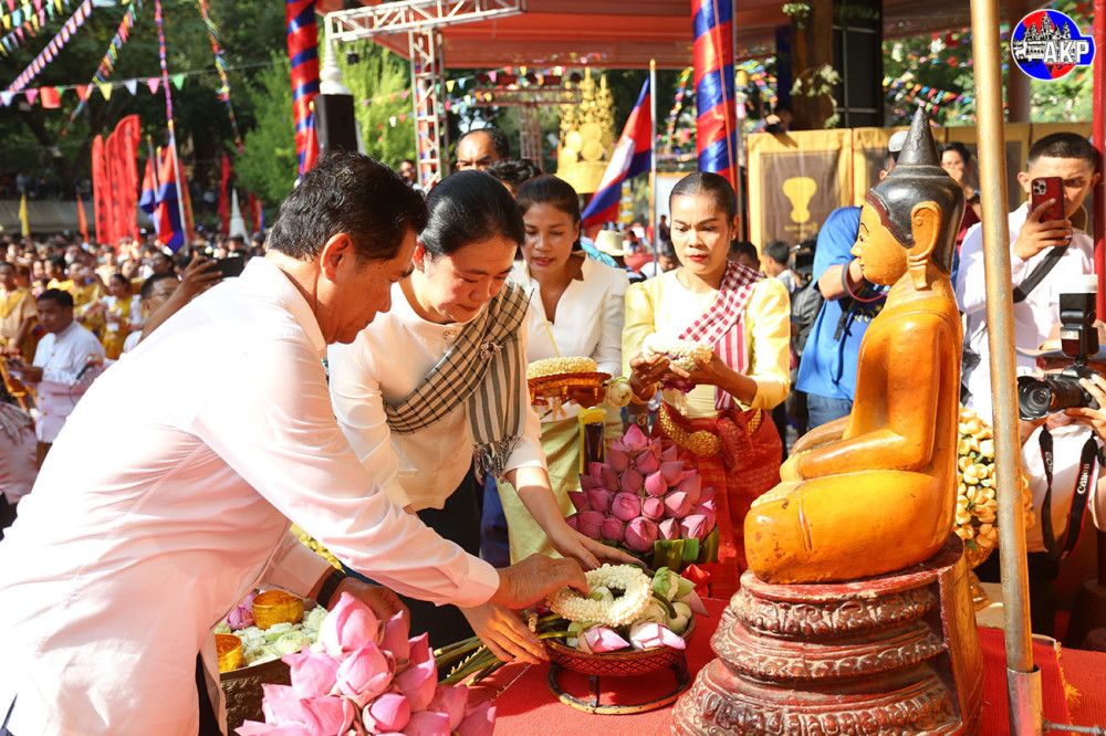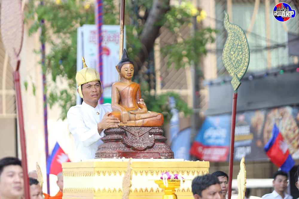 H.E. Khuong Sreng & Spouse Attend Buddha Statue Procession and Bathing Ceremony