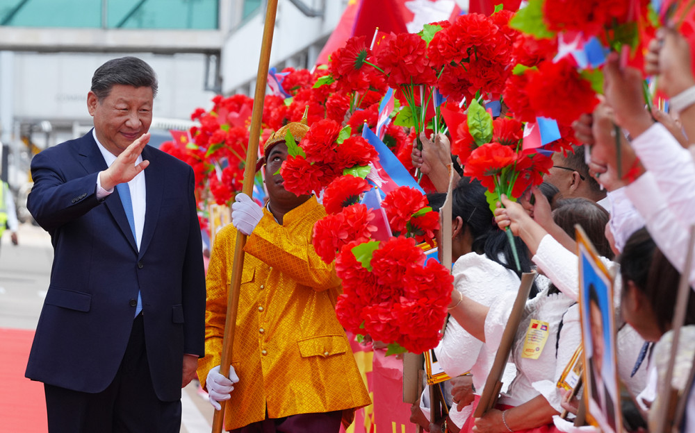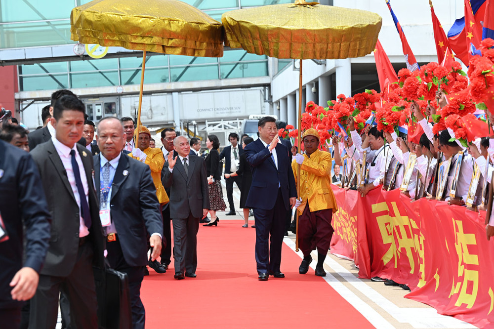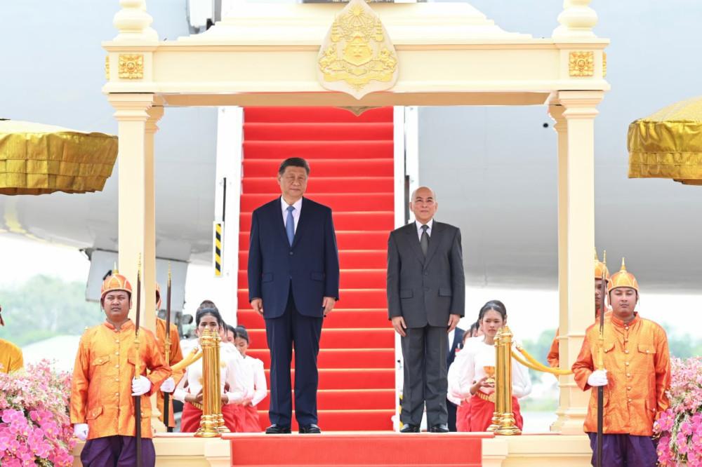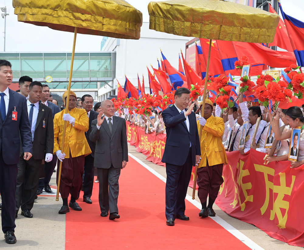 His Majesty Preah Bat Samdech Preah Boromneath Norodom Sihamoni, King of Cambodia, hosts a grand welcome ceremony of H.E. Xi Jinping, President of the People’s Republic of China, at Phnom Penh International Airport this morning.