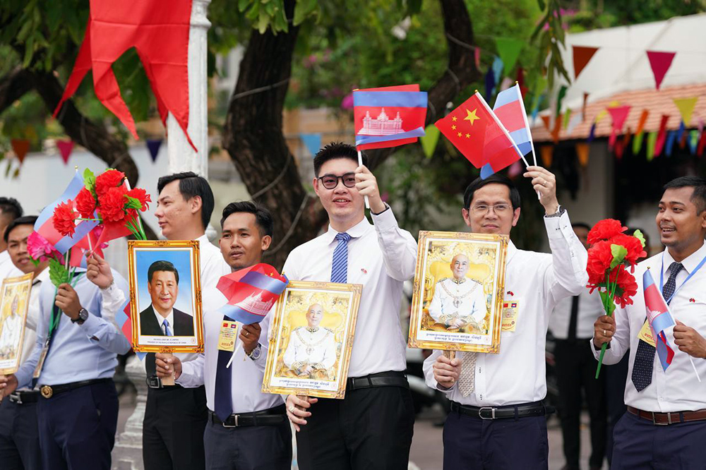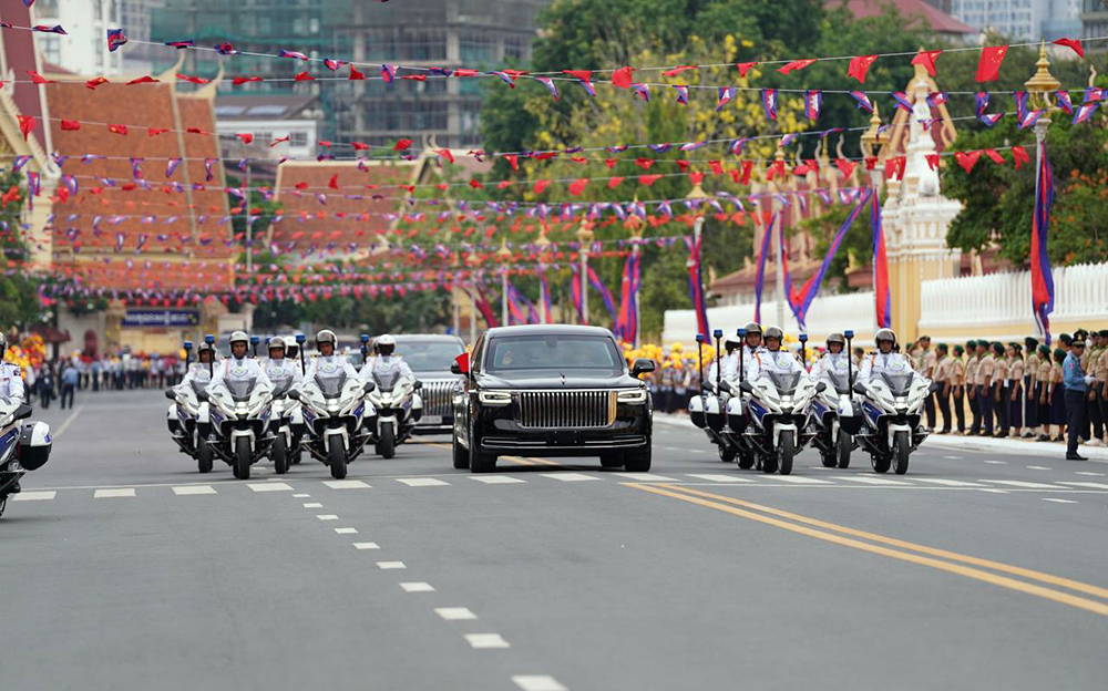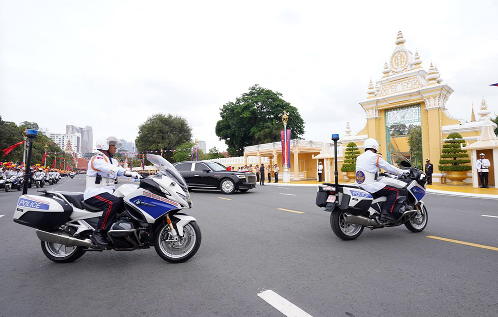 A convoy of H.E. Xi Jinping, President of the People’s Republic of China, arrives at the Royal Palace here this afternoon for a Royal Audience with His Majesty Preah Bat Samdech Preah Boromneath Norodom Sihamoni, King of Cambodia, under a warm welcome by a crowd of people outside the Royal Palace.