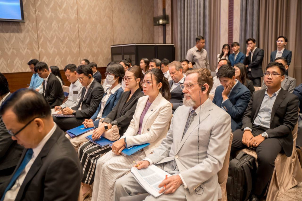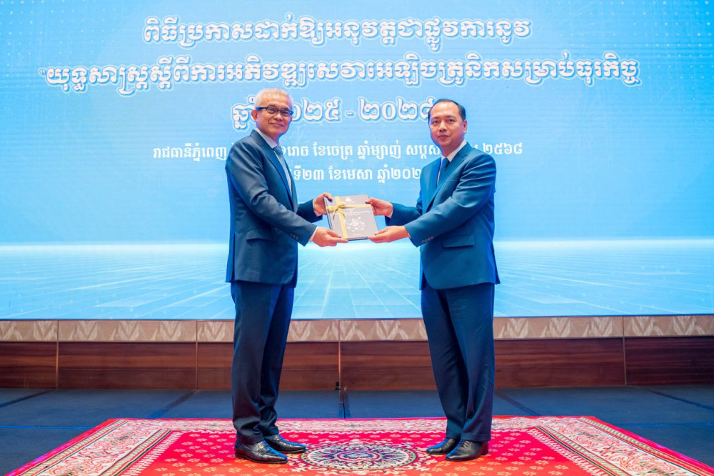 Cambodia officially launches the "Strategy on the Development of Electronic Services for Business 2025-2028" in a ceremony held at the Hyatt Regency Hotel, Phnom Penh this morning under the presidency of H.E. Dr. Aun Pornmoniroth (C Front, Pic. 1), Deputy Prime Minister, Minister of Economy and Finance.