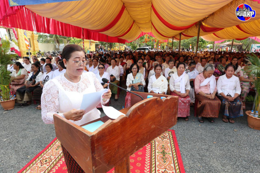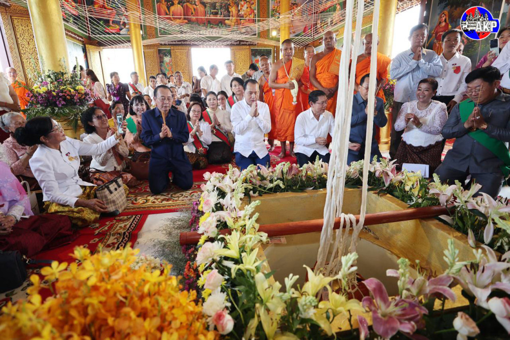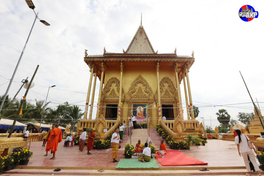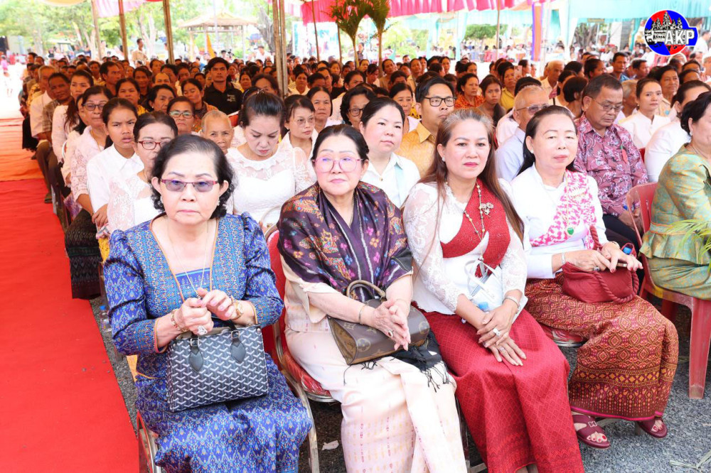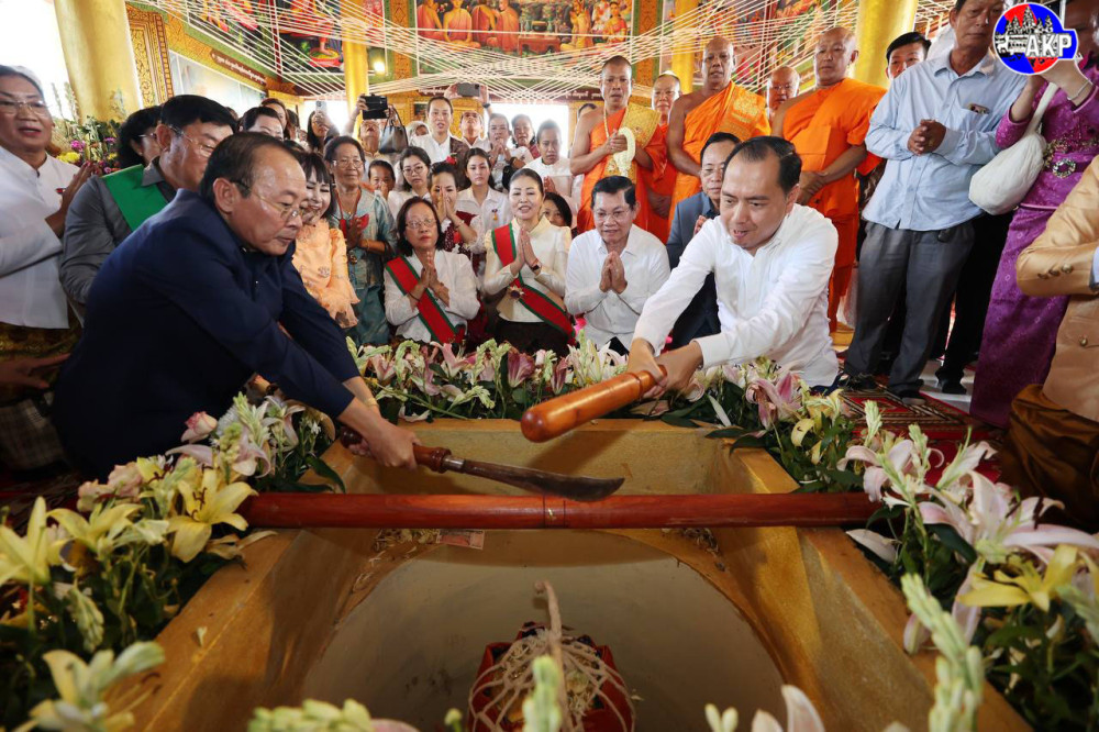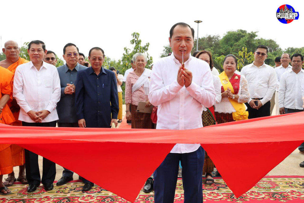H.E. Neth Pheaktra (C, Pic. 1), Minister of Information and Head of the Royal Government Working Group for Kratie Province, presides over the inauguration ceremony of a new temple and other achievements at Prek Saman pagoda in Prek Saman commune, Chhlong district, Kratie province, this morning.