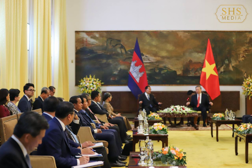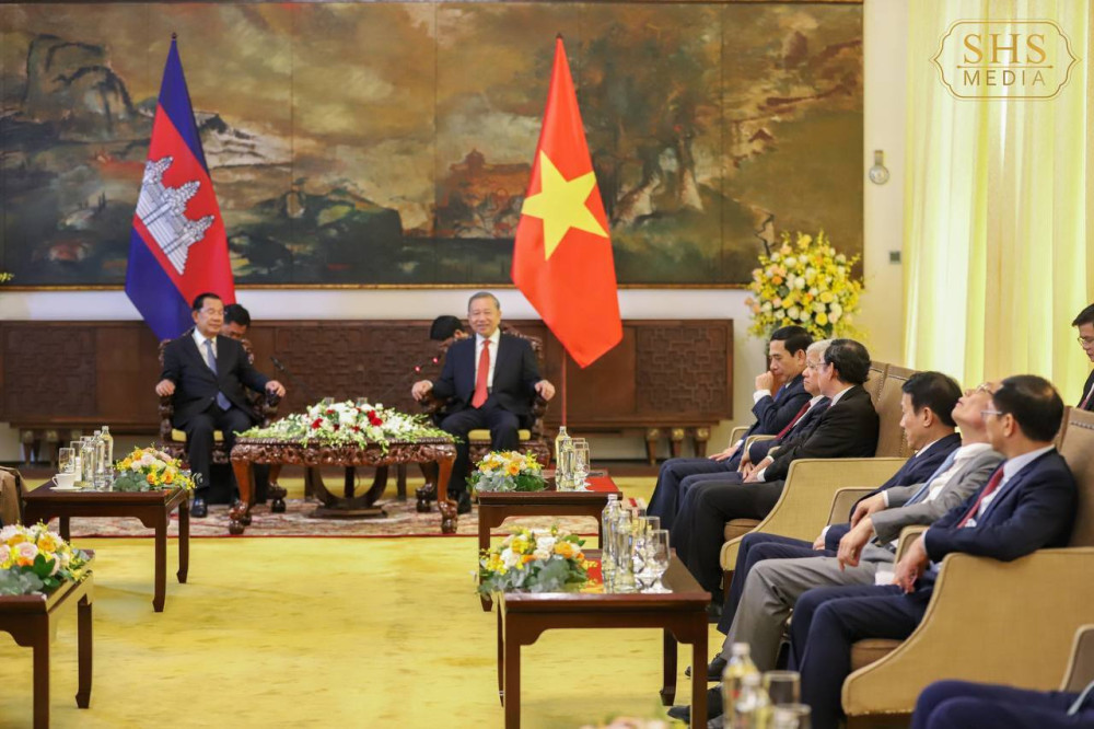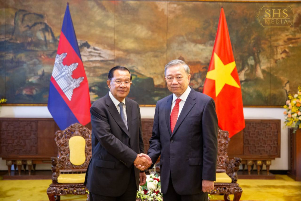 Samdech Akka Moha Sena Padei Techo Hun Sen (L, Pic. 1), President of the Senate and President of the Cambodian People's Party, poses for a photo with H.E. To Lam, General Secretary of the Communist Party of Vietnam (CPV), prior to their meeting in Ho Chi Minh City, this afternoon.
