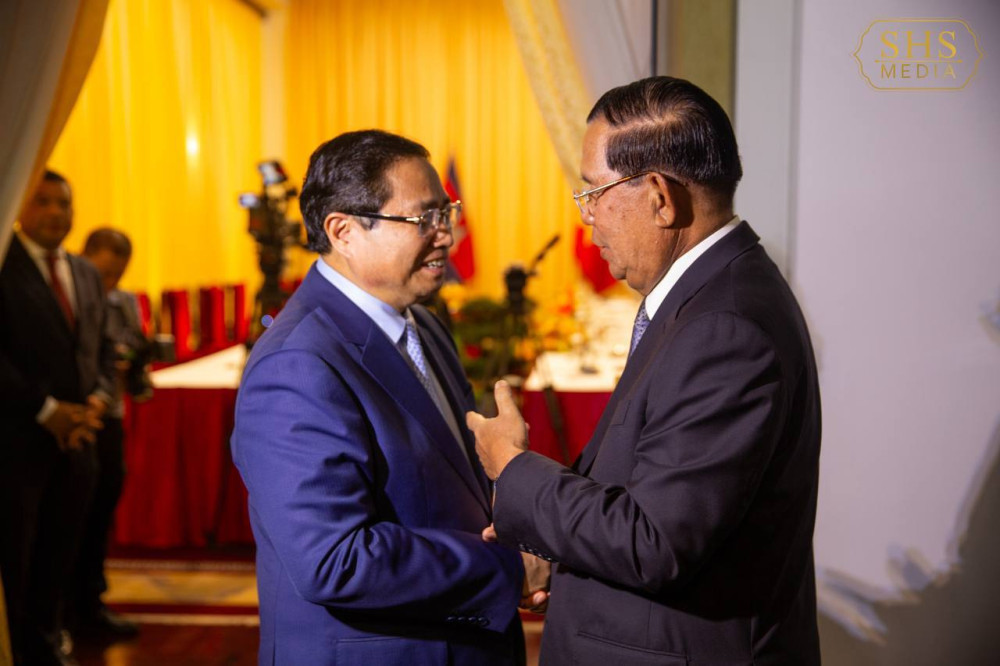 Samdech Akka Moha Sena Padei Techo Hun Sen (L, Pic. 1), President of the Senate of the Kingdom of Cambodia and President of the Cambodian People’s Party, meets with H.E. Pham Minh Chinh, Prime Minister of the Socialist Republic of Vietnam, in Ho Chi Minh City this afternoon.