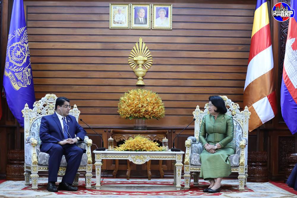 Samdech Khuon Sudary warmly welcomed Hon. Ek Nath Dhakal and his delegation, recognised him as a long-time friend of Cambodia, a witness to Cambodia's national elections, and an important bridge connecting Cambodia with the international community.