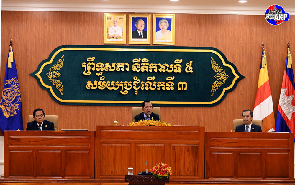 the Senate of the 5th Legislature continues here at the Senate Palace this morning its 3rd session under the chairmanship of its President Samdech Akka Moha Sena Padei Techo Hun Sen (Pic. 1).