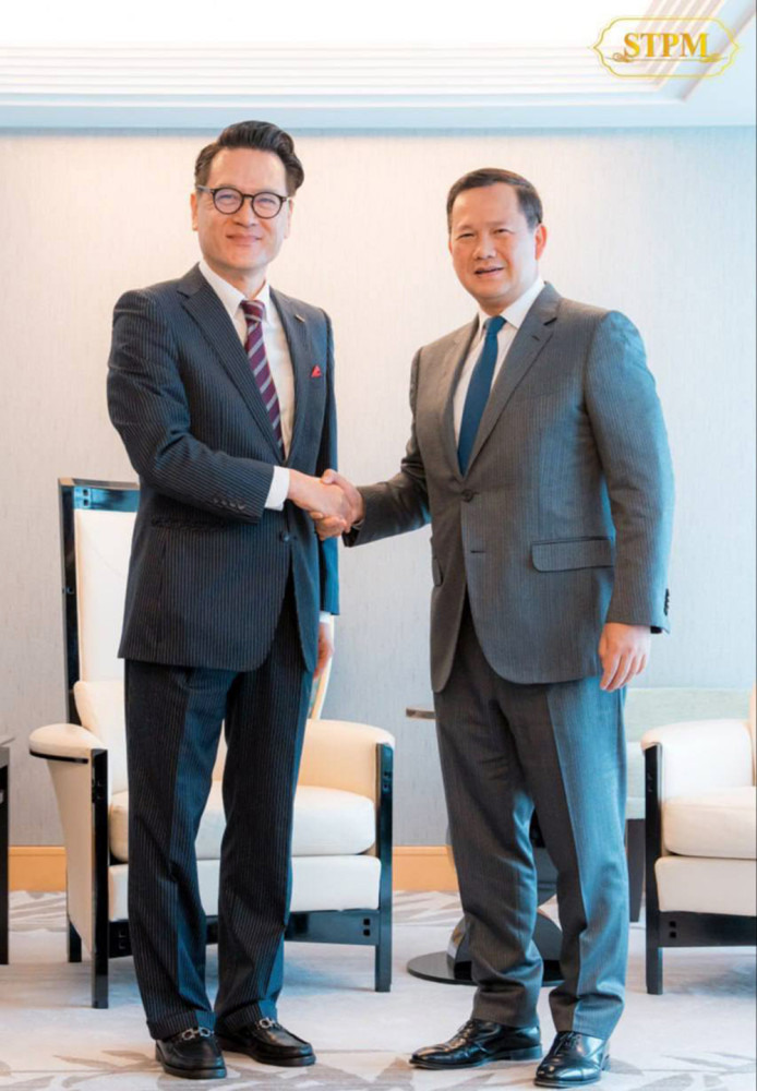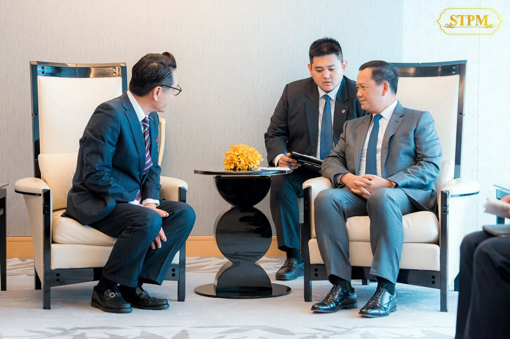 Cambodia’s Prime Minister Samdech Moha Borvor Thipadei Hun Manet (R, Pic. 1) meets with Mr. Deng Minghui, President of Shinto Holdings Inc. (Kitayama Shoji Co., Ltd.), in Tokyo, Japan this afternoon.