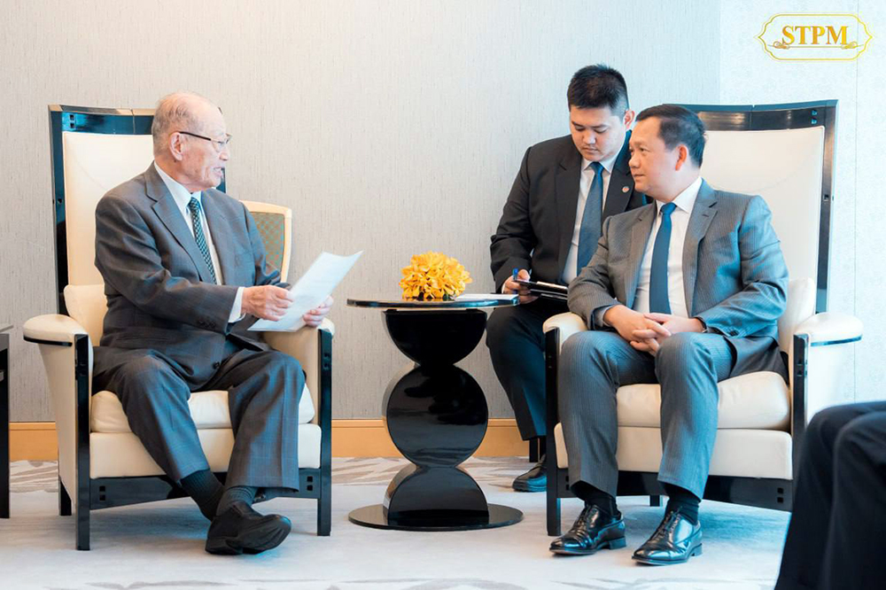 Cambodia’s Prime Minister Samdech Moha Borvor Thipadei Hun Manet (R, Pic. 1) shakes hands with Mr. MATSUZAWA Ken, President of the International Friendship Exchange Council, prior to their meeting in Tokyo, Japan this afternoon