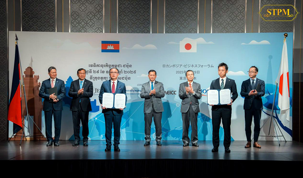 Cambodia’s Prime Minister Samdech Moha Borvor Thipadei Hun Manet (C, Pic. 1) presides over the exchange of two Memoranda of Understanding aimed at promoting trade and enhancing business partnerships as well as establishing a robust investment partnership for the future between Cambodia and Japan, following the Cambodia-Japan Business Forum in Tokyo, Japan this evening (Tokyo time).