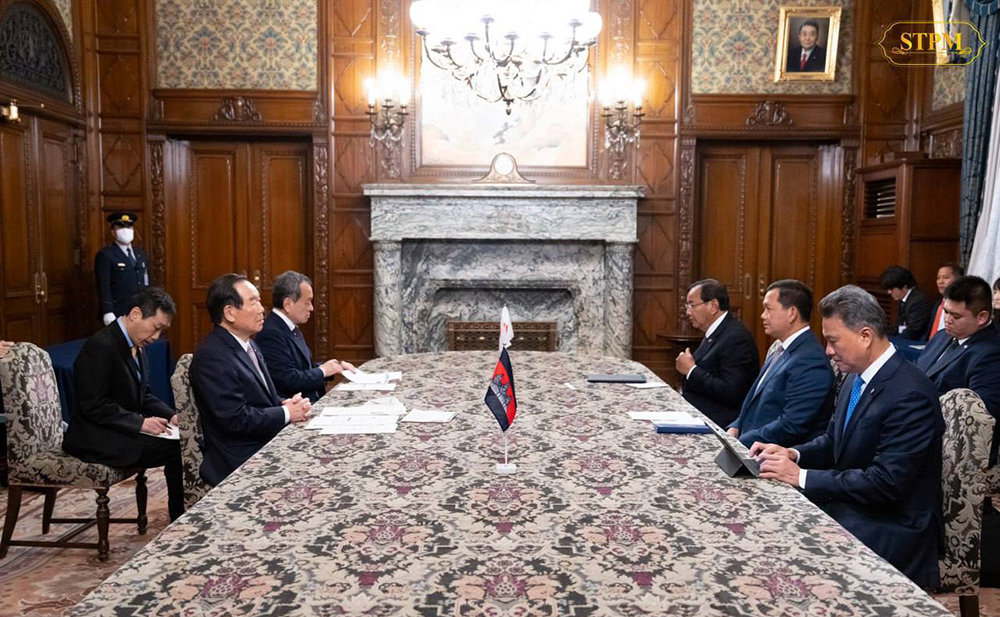 Cambodia’s Prime Minister Samdech Moha Borvor Thipadei Hun Manet (Pic. 1) holds a meeting with H.E. NUKAGA Fukushiro (Pic. 2), Speaker of the House of Representatives of Japan, in Tokyo this afternoon, as part of the Premier’s official working visit to Japan from May 28 to 31.