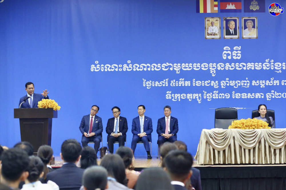 Prime Minister Samdech Moha Borvor Thipadei Hun Manet and First Lady Lok Chumteav Dr. Pich Chanmony hold a get-together in Tokyo this morning with some 1,600 Cambodian people living, working and studying in Japan.