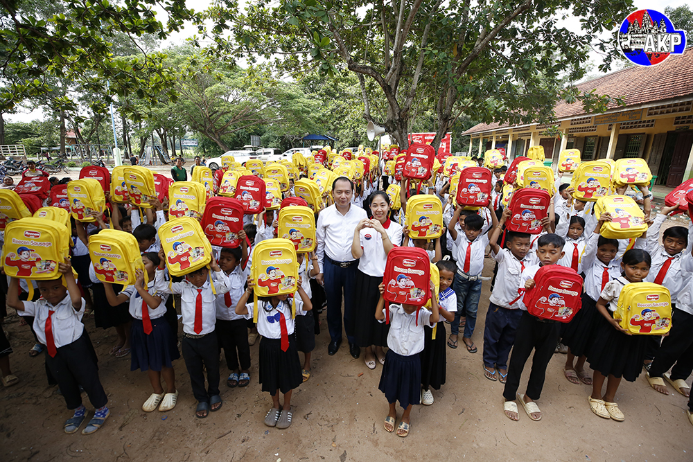 Some 400 Primary School Children in Kratie’s Chlong District Receive School Bags and Supplies