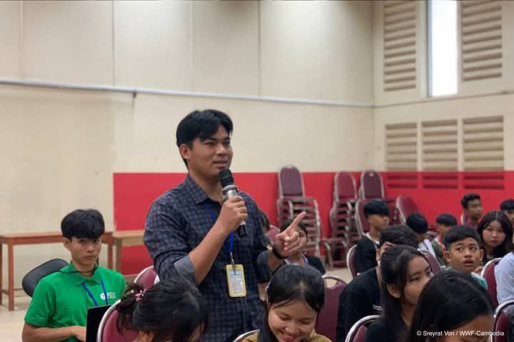 In preparation for World Environment Day on June 5, WWF-Cambodia collaborated with the non-governmental organisation Pour un Sourire d'Enfant (PSE) to organise a knowledge-sharing session on environment and conservation for approximately 140 students.