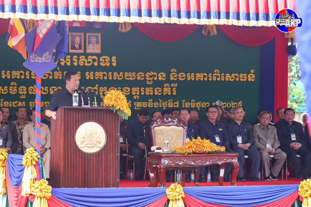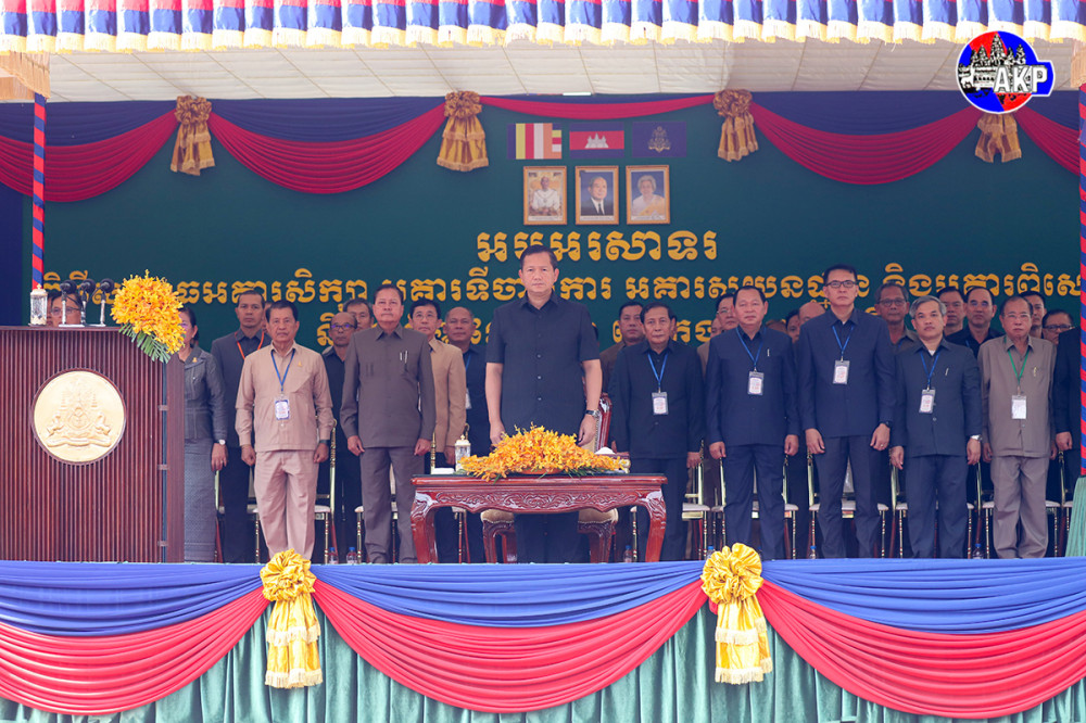 Prime Minister Samdech Moha Borvor Thipadei Hun Manet (Pic. 1) cuts red ribbon to inaugurate school buildings, administrative buildings, dormitories, a laboratory and other educational achievements in Rattanakiri province this morning.