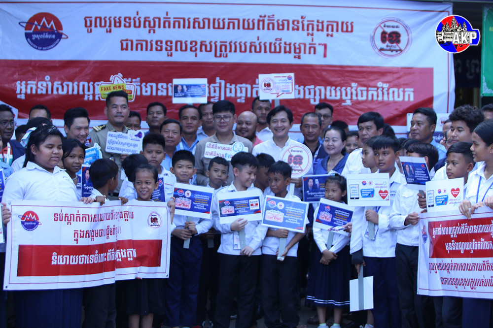 The Ministry of Information represented by H.E. Tep Asnarith (L, Pic. 1), Undersecretary of State and the ministry’s Spokesperson in collaboration with youth civil society organisations organises a workshop under the theme "Digital Citizens Prevent Fake News" and a march on “Say No to Fake News” in Phnom Penh this morning.