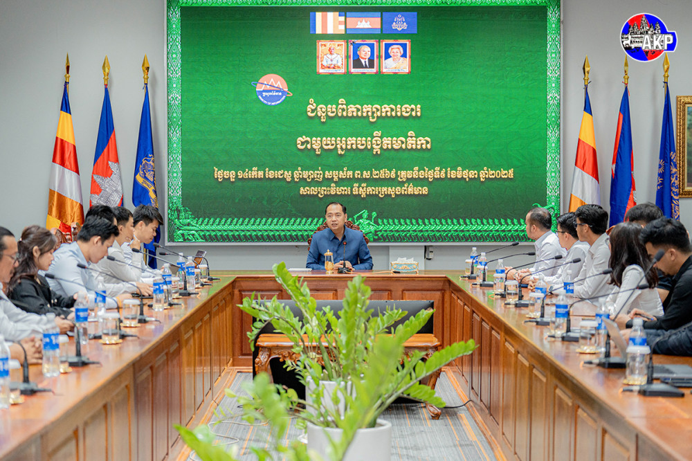 H.E. Neth Pheaktra (Pic. 1), Minister of Information, holds a meeting with social content creators at the ministry this morning.