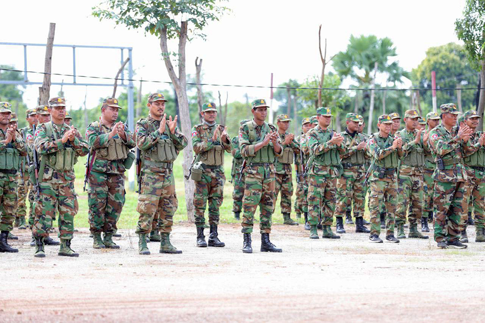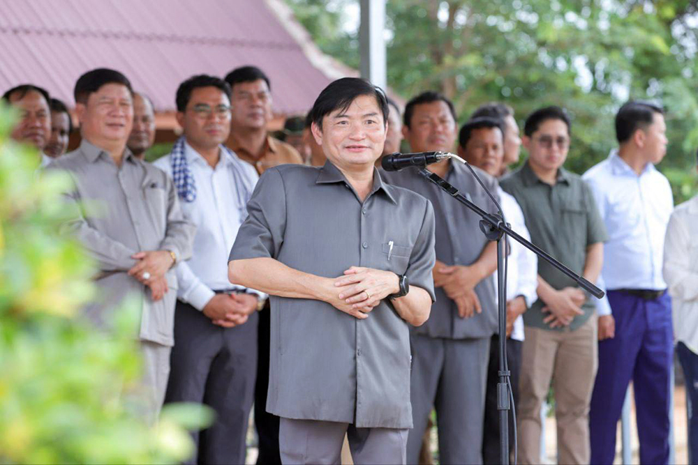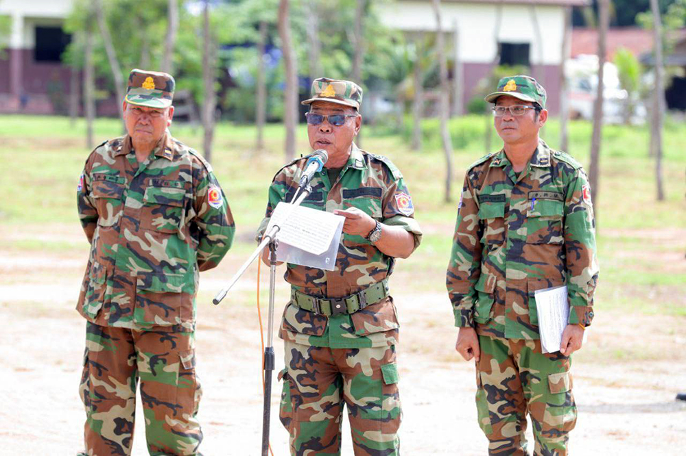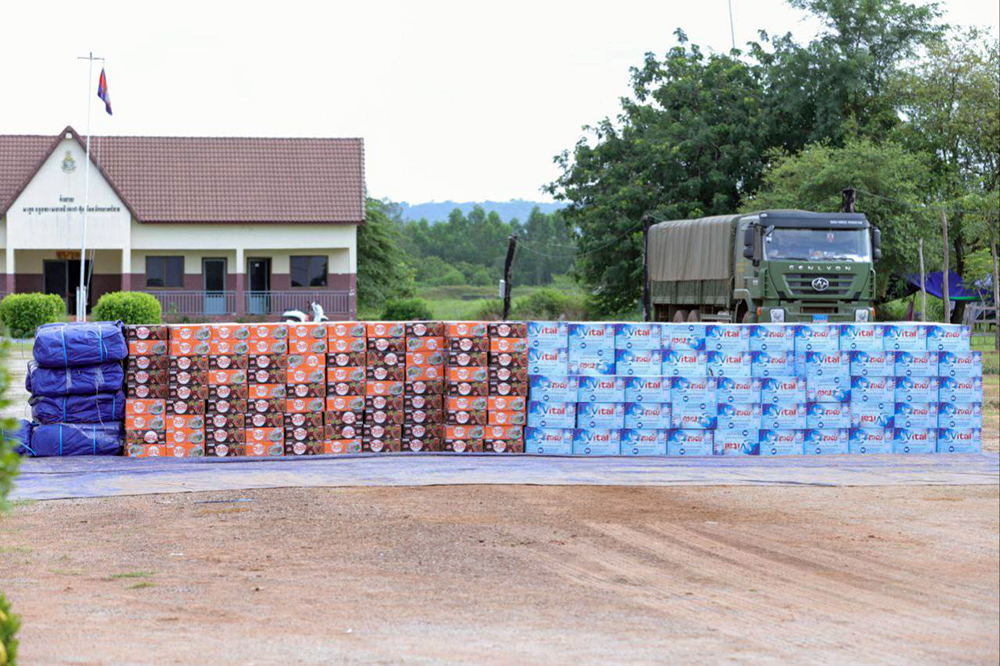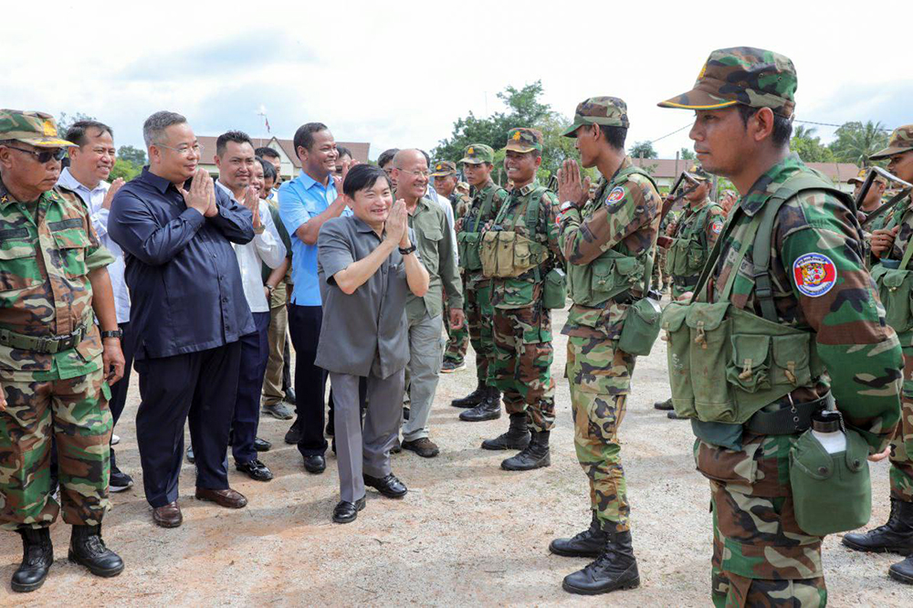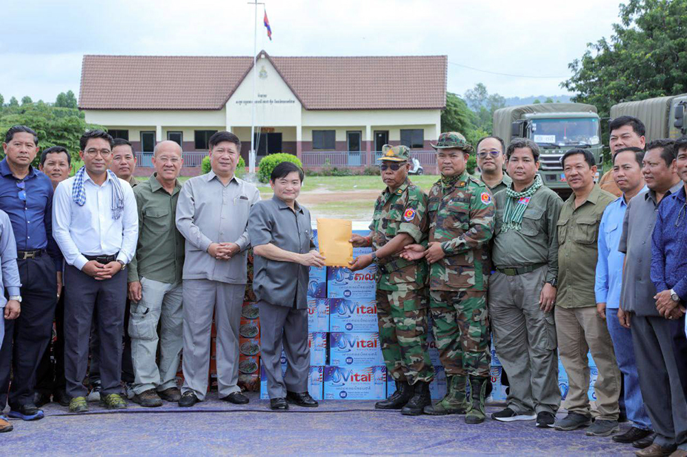 H.E. Heng Sour (C, Pic. 1), Minister of Labour and Vocational Training, accompanied by his colleagues, this morning visits and hands over donations to soldiers of the 42nd Infantry Brigade stationed at Ta Moan Temple in Oddar Meanchey province.