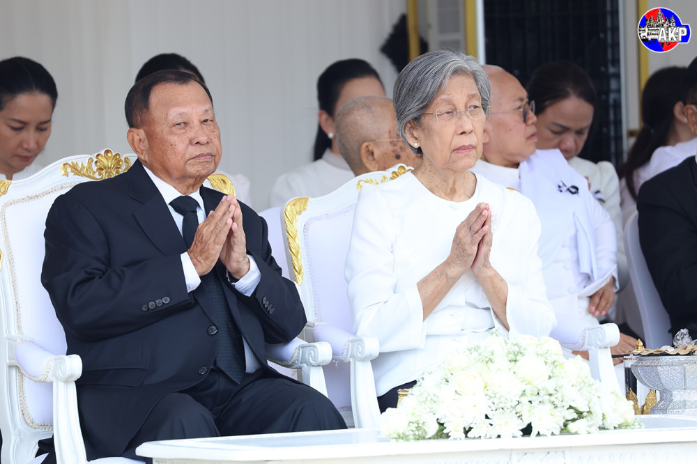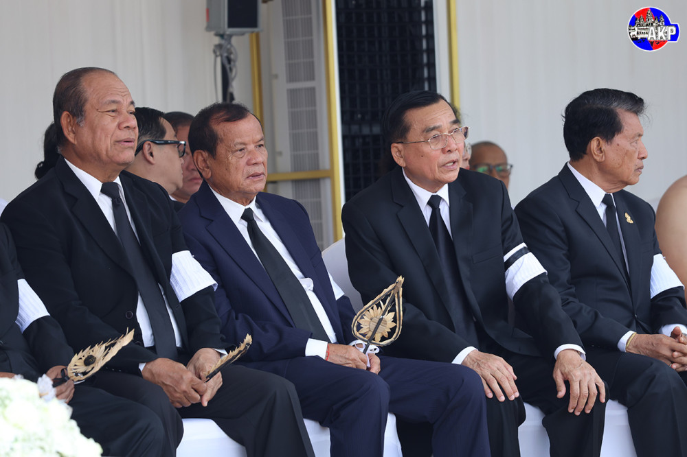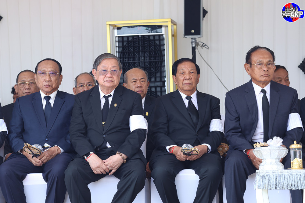 Samdech Vibol Sena Pheakdei Say Chhum (L, Pic. 1) and his spouse preside over the cremation ceremony of late H.E. Mum Chim Huy, Advisor to the Senate President and former member of the Royal Government, National Assembly and Senate, who passed away on June 8 at the age of 89 years old, at a crematorium in front of Botum Vattey pagoda in Phnom Penh this morning.