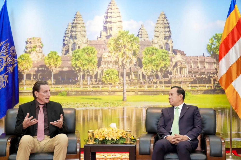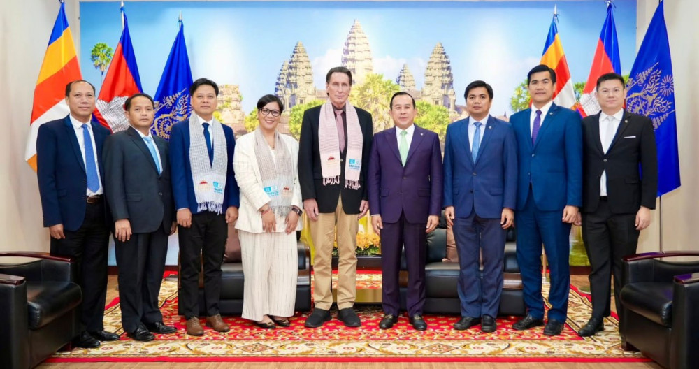 H.E. Huot Hak, Minister of Tourism, received here on June 11 Mr. David Elliott Ulmer, Chief Executive Officer of Cambodian Broadcasting Service Co., Ltd. (CBS), along with his delegation, for a courtesy call and business discussion.