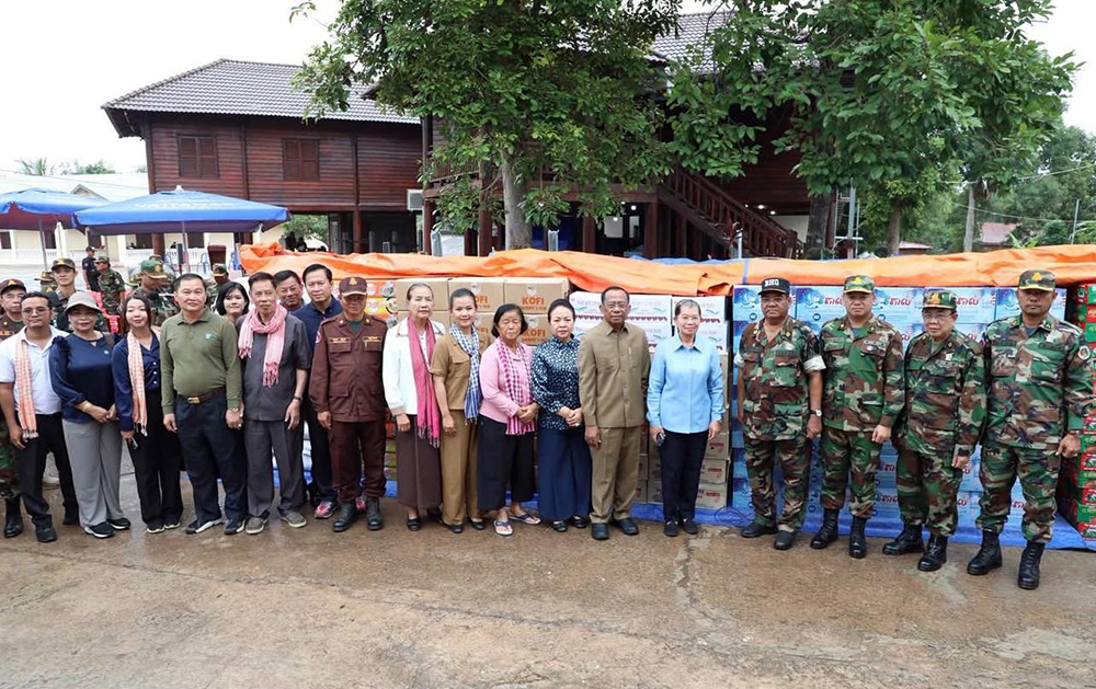 Samdech Kitti Sangahapundit Men Sam An, Member of the Supreme Privy Council to His Majesty the King and President of the National Council for Solidarity and Development of Cambodia Motherland, has donated essential food supplies and financial aid to military personnel stationed along the Cambodia-Thailand border in Preah Vihear province.