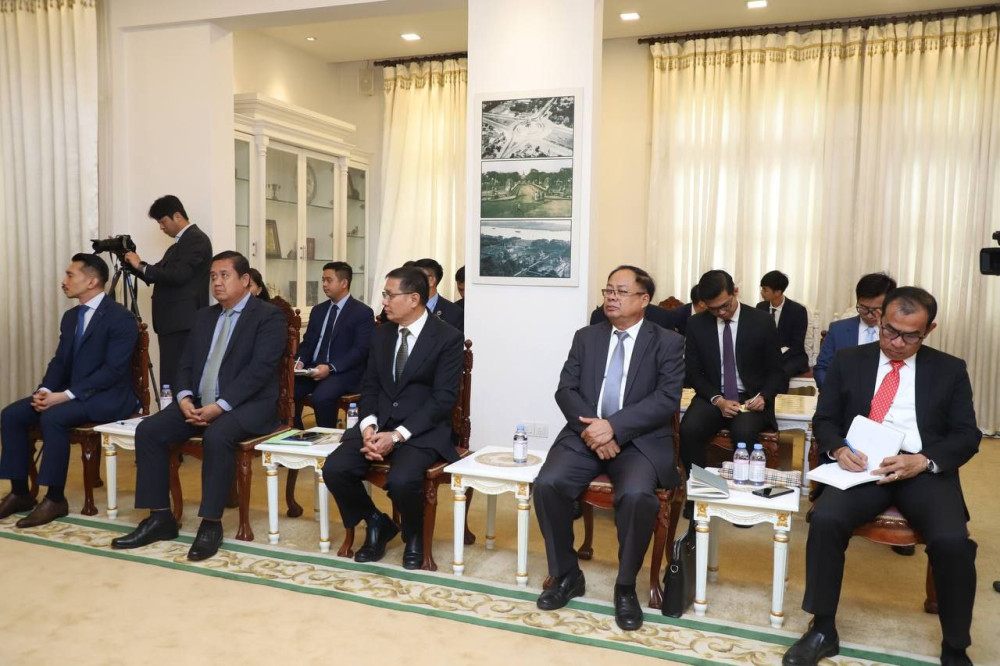 Phnom Penh Municipal Governor H.E. Khuong Sreng (L, Pic. 1) greets visiting H.E. Kim Yung-rok, Governor of Jeollanam-do of the Republic of Korea, prior to their bilateral meeting here this afternoon to discuss the establishment of sister city alliance.
