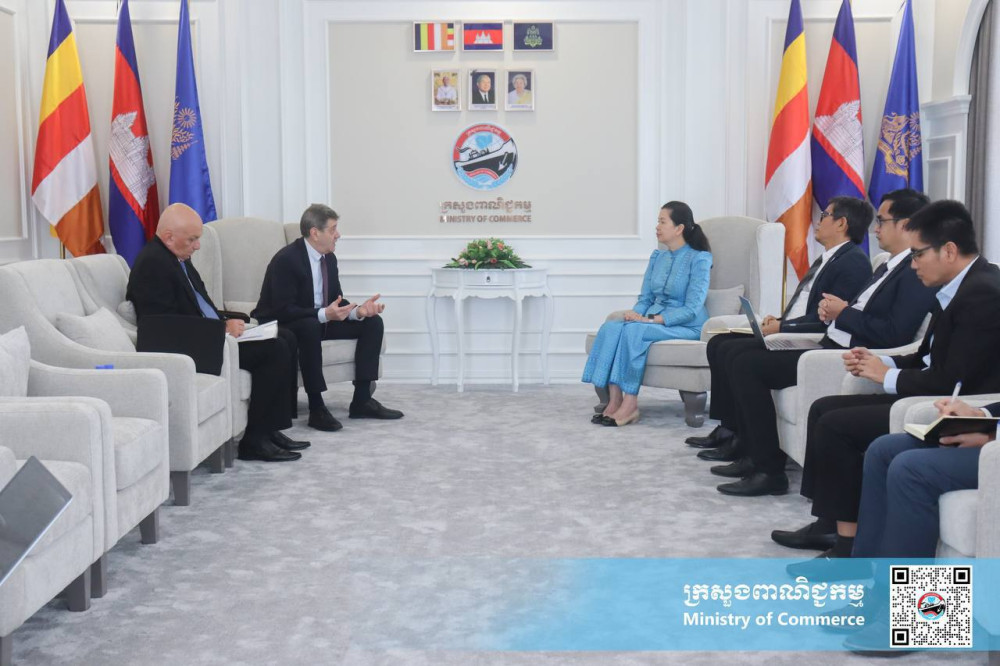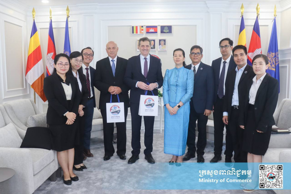 H.E. Ms. Tekreth Kamrang (R, Pic. 1), Secretary of State at the Ministry of Commerce, receives a courtesy call from H.E. Pavlin Todorov, the newly appointed Ambassador of the Republic of Bulgaria to the Kingdom of Cambodia at the ministry’s office here this morning.
