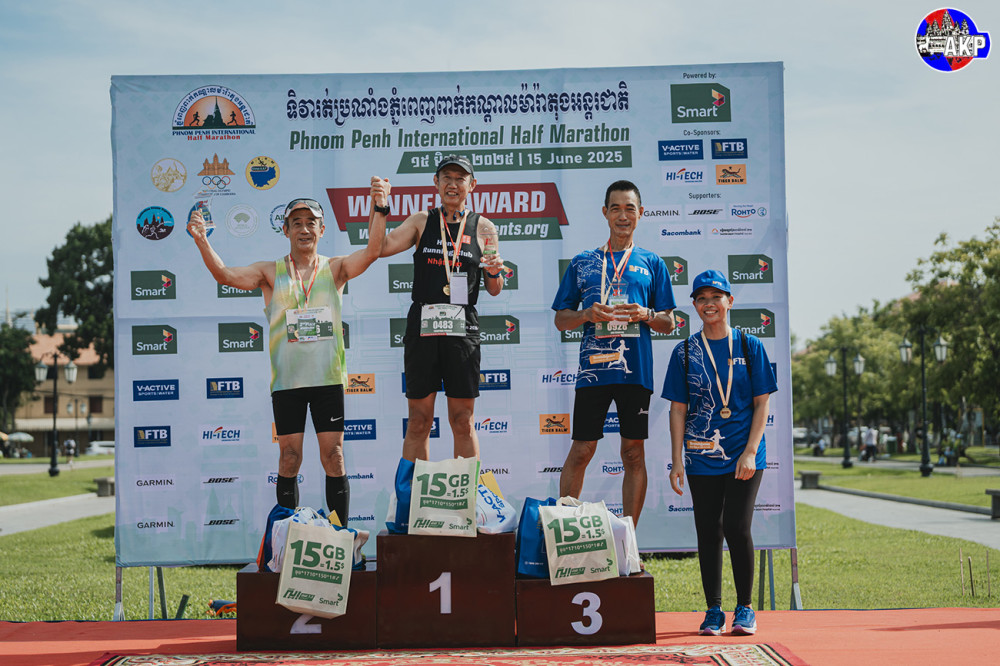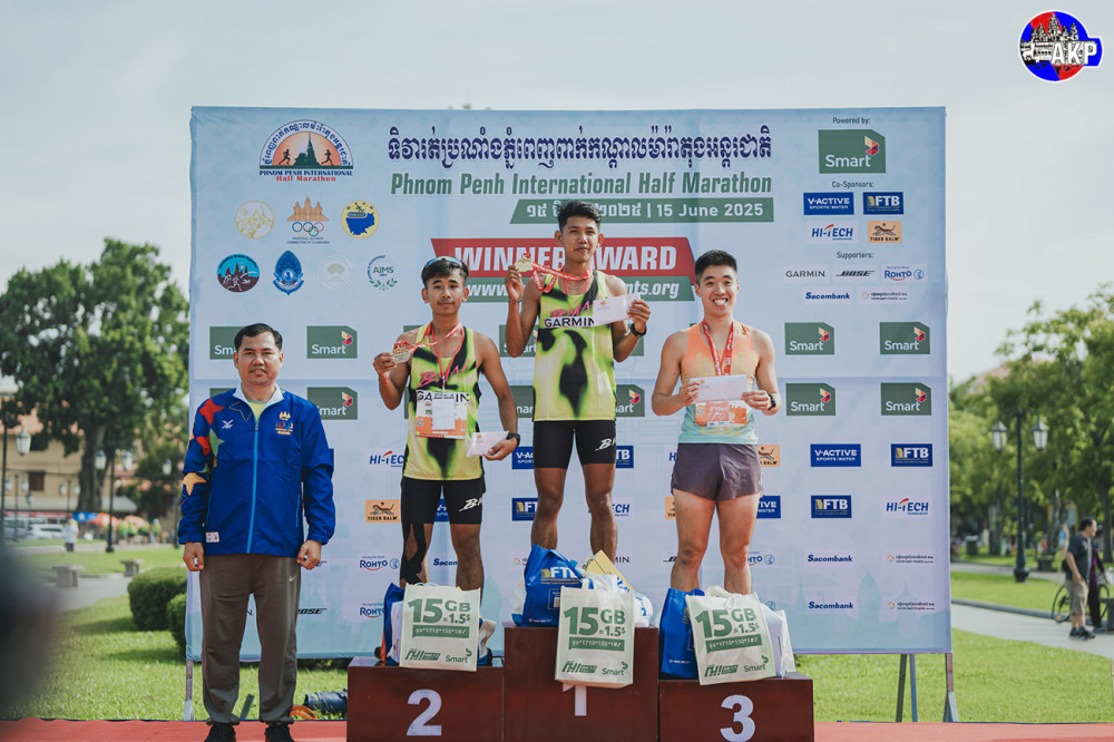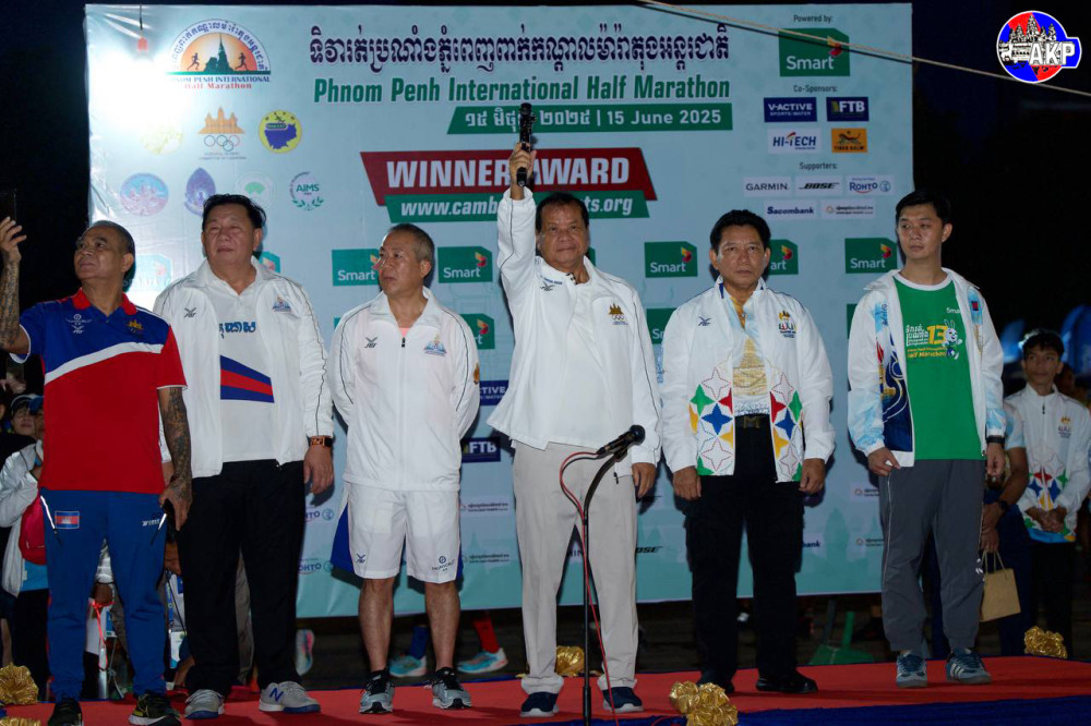 Phnom Penh this morning hosts the 13th International Half Marathon 2025 to mark the 89th Birthday of Her Majesty the Queen-Mother Norodom Monineath Sihanouk (June 18) with the participation of more than 5,000 national and international runners under the auspices of H.E. Thong Khon (3rd R, Pic. 1), Senior Minister and Chairman of the National Olympic Committee of Cambodia (NOCC).