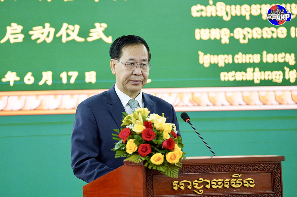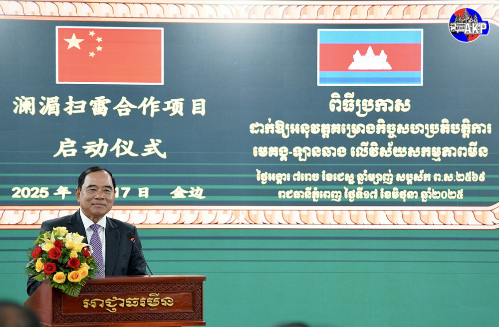 H.E. Dr. Ly Thuch (Pic. 1), Senior Minister and First Vice President of the Cambodian Mine Action and Victim Assistance Authority (CMAA), addresses the participants while he was presiding over the launching ceremony of the “Mekong-Lancang Cooperation Project on Mine Action,” held at the CMAA headquarters in Phnom Penh this morning.