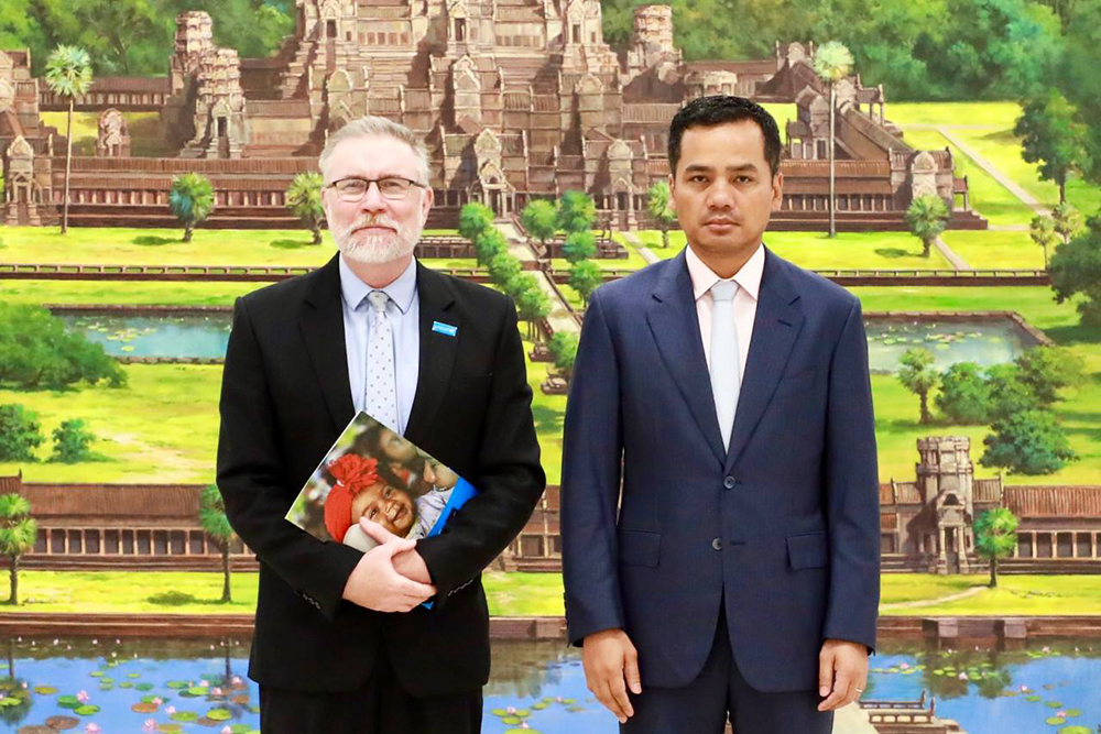 Deputy Prime Minister and Minister of Interior, H.E. Aphi Santepundit Sar Sokha, met here this morning with Dr. Will Parks, UNICEF Representative to Cambodia, to review the ongoing collaboration between the Ministry of Interior and UNICEF.