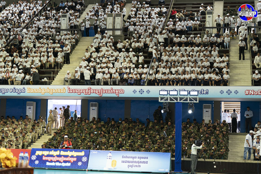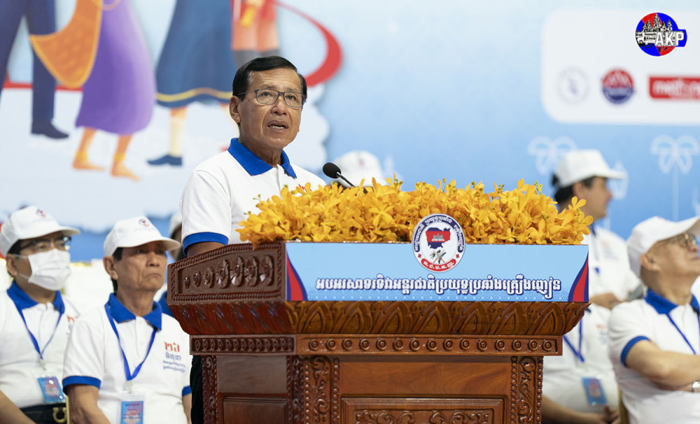 H.E. Santepundit Neth Savoeun (Pic. 1), Deputy Prime Minister and Chairman of the National Authority for Combating Drugs, delivers his remarks while he was presiding over the celebration of the International Day Against Drug Abuse and Illicit Trafficking (June 26), held here at the Olympic National Stadium this afternoon.