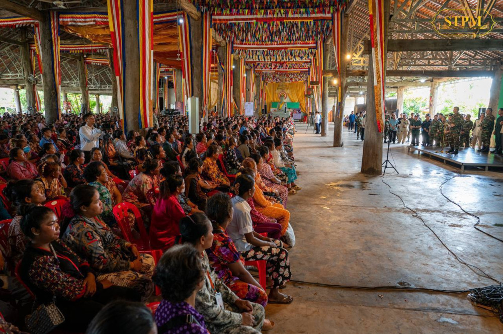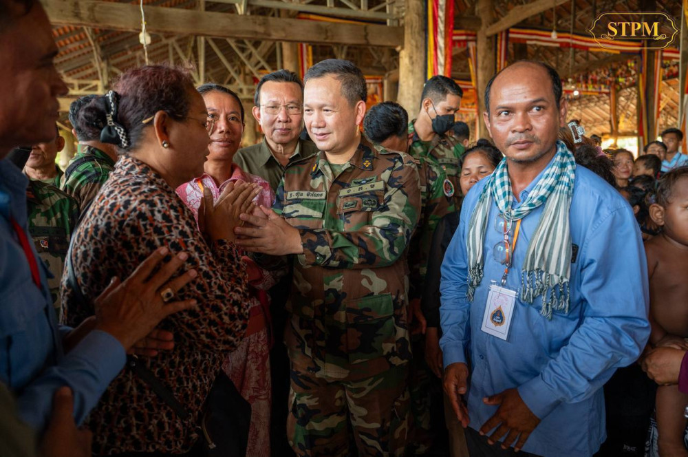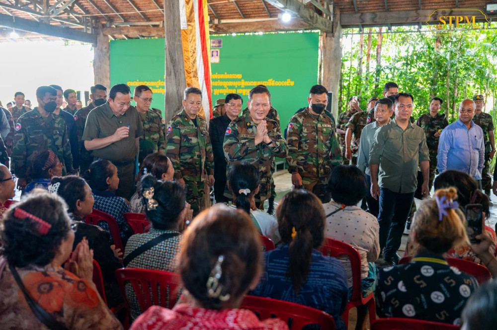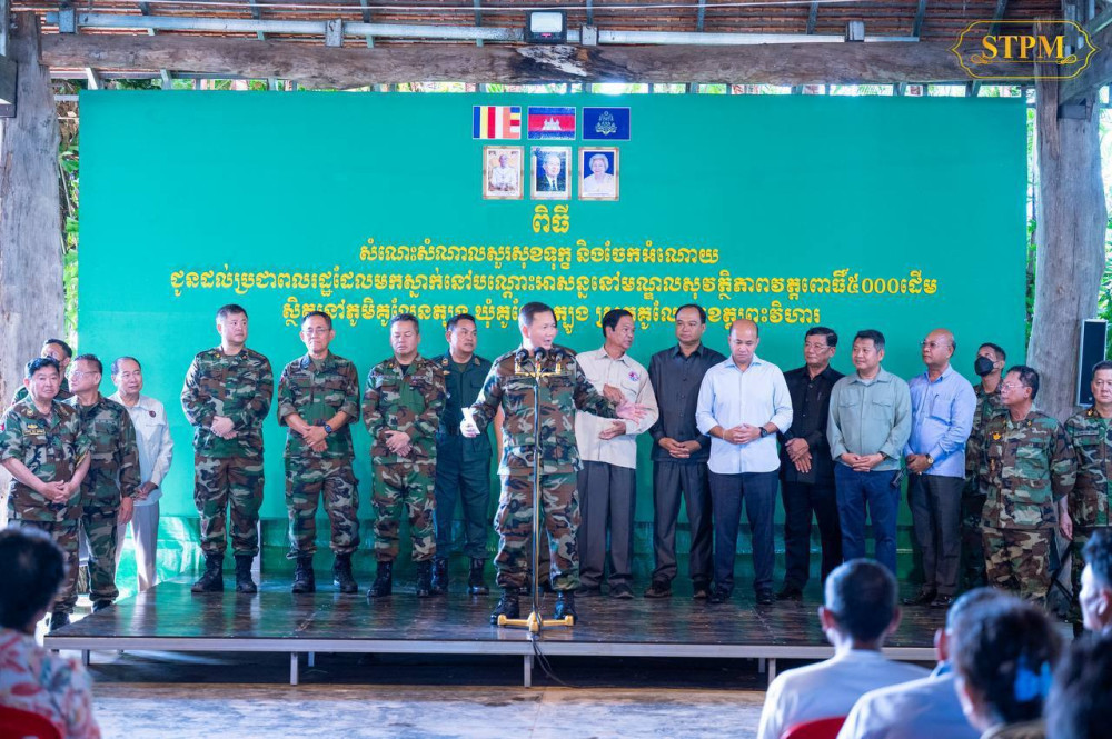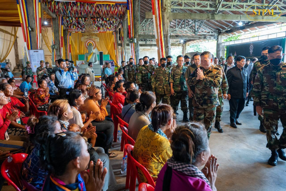 Prime Minister Samdech Moha Borvor Thipadei Hun Manet visits 1,282 displaced families sheltering at the Wat Po 5000 safety centre in Kulen Thbong village, Kulen Thbong commune, Kulen district, Preah Vihear province this afternoon.