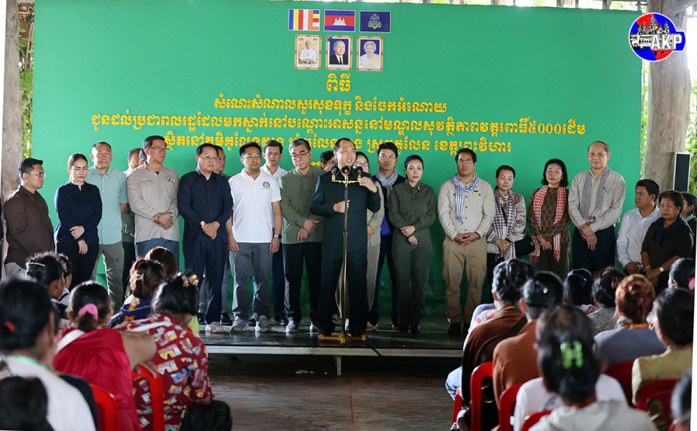 H.E. Neth Pheaktra (Pic. 1), Minister of Information, this morning leads a delegation to visit and assess the living conditions of 1,282 temporary displaced families (3,850 individuals) sheltering at the Wat Po 5000 safety centre in Kulen Thbong village, Kulen Thbong commune, Kulen district, Preah Vihear province this morning.