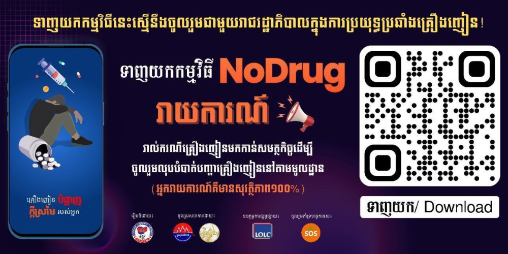 Meanwhile, Samdech Thipadei Hun Manet encouraged the public to continue using the NoDrug mobile application, designed to make educational information on drugs conveniently accessible and to promote reporting of drug offences easier while highly securing confidentiality.