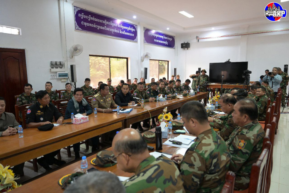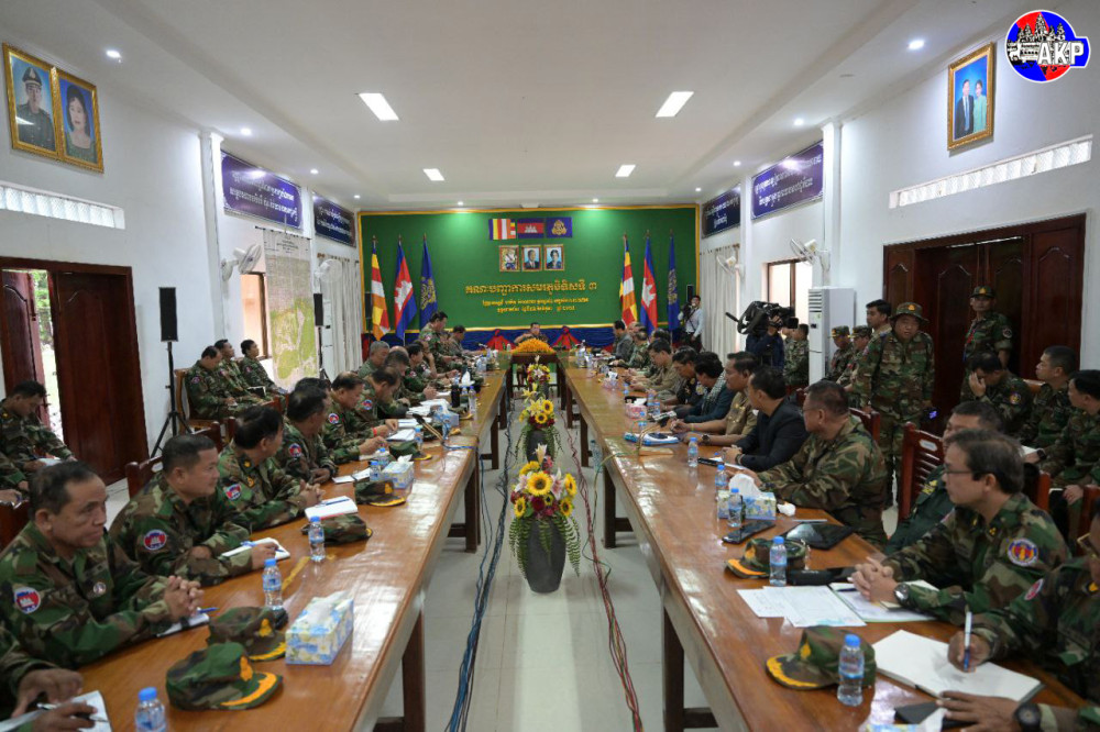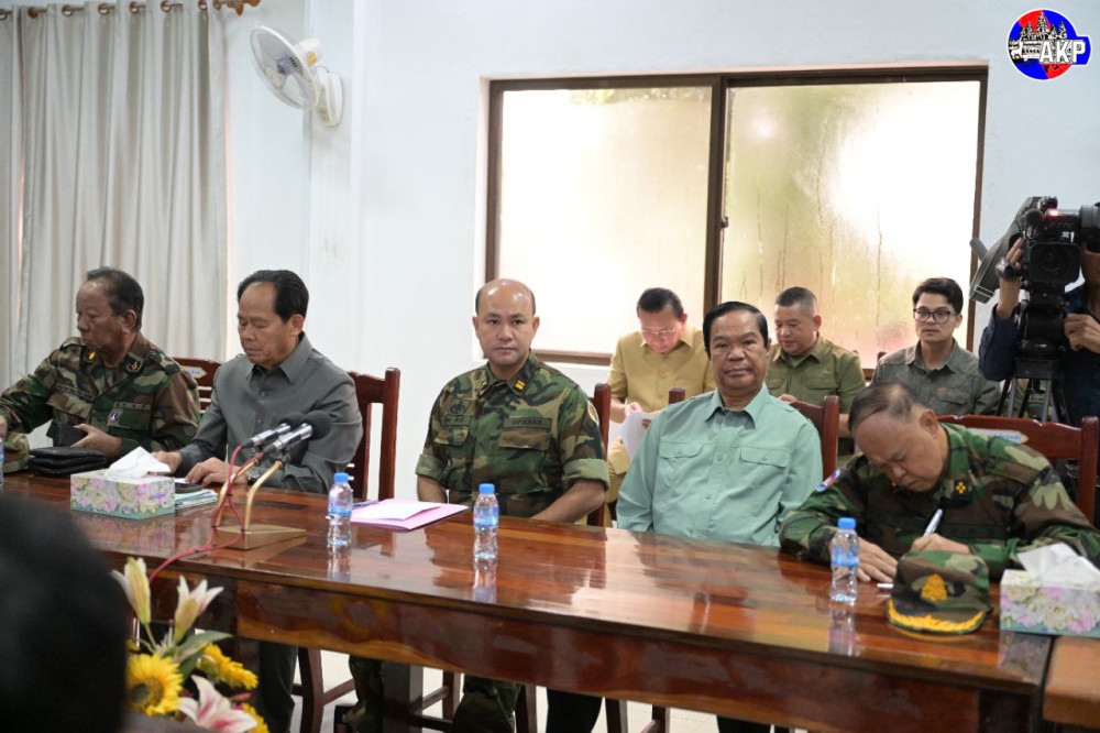 Samdech Akka Moha Sena Padei Techo Hun Sen (Pic. 1), Five-Star General and President of the Senate of the Kingdom of Cambodia, holds a meeting with frontline unit commanders in Samrong City, Oddar Meanchey province this morning.