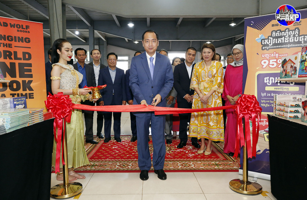 H.E. Neth Pheaktra (Pic. 1), Minister of Information, cuts red ribbon to officially open the 4th “Big Bad Wolf Books Cambodia” Fair here this morning, with the participation of Ms. Nur Herzazzila, Counsellor and Deputy Head of Mission at the Embassy of Malaysia to Cambodia; Oknha Ouk Chantha, partner of Big Bad Wolf Books; and Ms. Jacqueline Ng, co-founder of Big Bad Wolf Books.