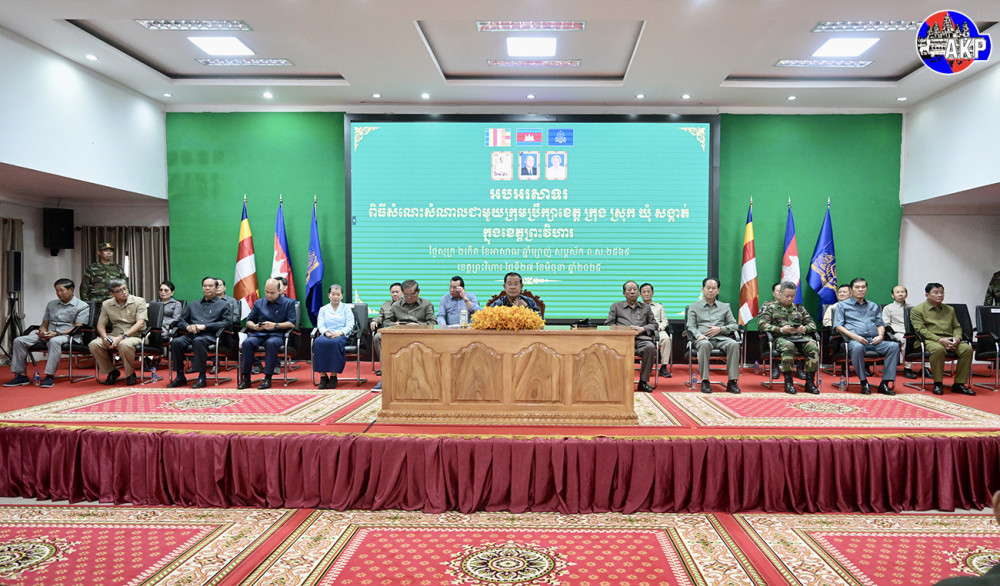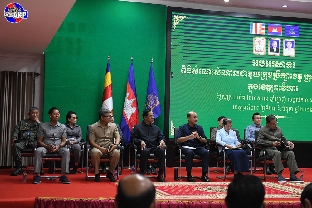 Samdech Akka Moha Sena Padei Techo Hun Sen (Pic. 1), President of the Senate of the Kingdom of Cambodia, holds a get-together with council members of the province, city, districts, communes, and Sangkat in Preah Vihear province this morning.